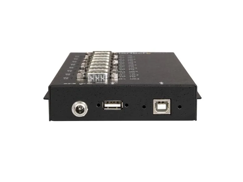 StarTech.com 8 Port Serial Hub USB to RS232/RS485/RS422 Adapter, Industrial USB 2.0 to DB9 Serial Converter Hub, IP30 Rated, Din Rail Mountable Metal Serial Hub, 15kV ESD Protection - 6ft Locking Cable Incl - Seriell adapter - USB 2.0 - RS-232/422/485 x 8 - svart - TAA-samsvar