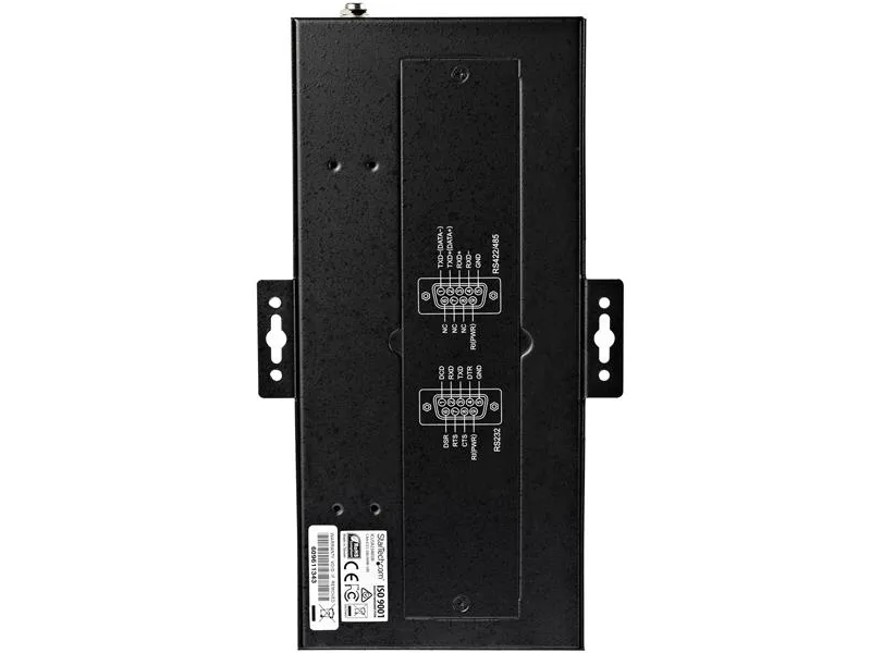 The serial adapter offers flexible mounting options, with a built-in wall-mounting bracket and included DIN rail mounting kit. It also features a screw-locking host connection plus a screw-locking USB-B connector on the included USB cable, to prevent accidental disconnections.