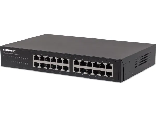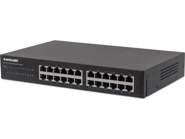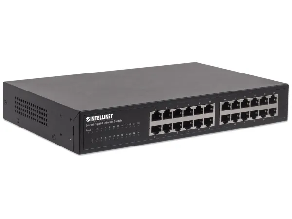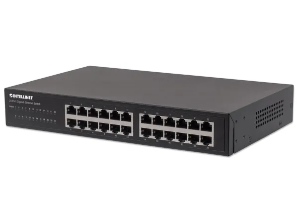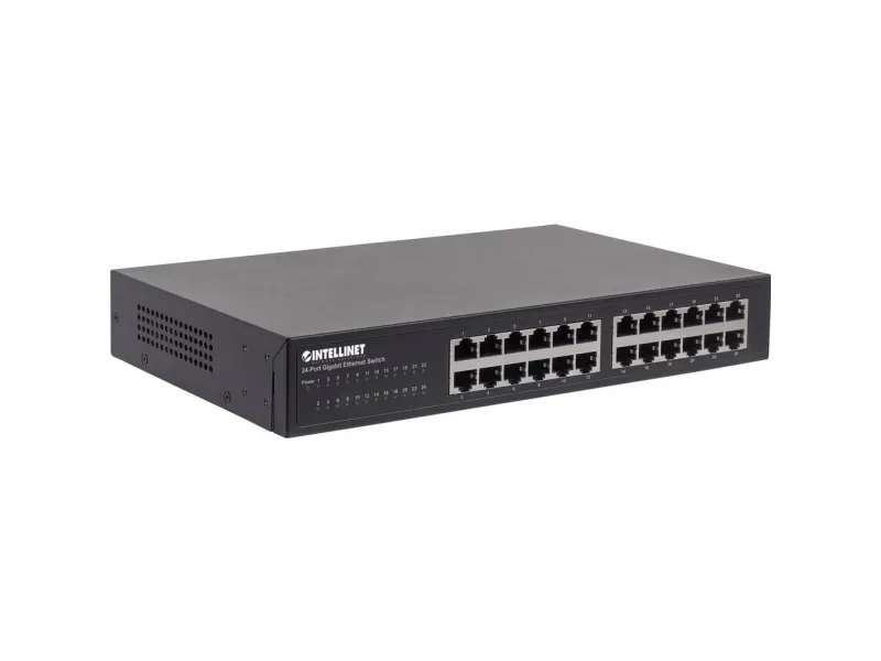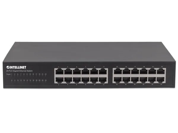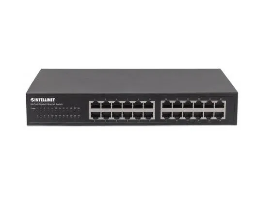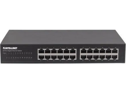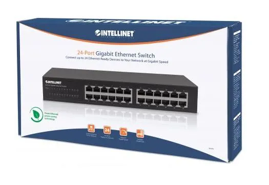 Boost your network speed. _x000D_ _x000D_ The Intellinet Network Solutions 24-Port Gigabit Ethernet Switch (561273) offers an array of features while providing superior network throughput. It is very easy to set up and requires no configuration whatsoever. Thanks to its desktop and 19"; rackmount design, superior performance and value, the Intellinet Network Solutions 24-Port Gigabit Ethernet Switch is the perfect choice for expanding your small office home or home network. _x000D_ _x000D_ Extreme Throughput _x000D_ With a backplane speed of 48 Gbps, plenty of performance is available for your computers, servers and other networking devices. _x000D_ _x000D_ Auto Features _x000D_ This Gigabit LAN switch includes many automatic features that make it easy to use. No configuration is required, so installation is Plug and Play and hassle-free. Auto-MDI/MDI-X crossover on all ports eliminates the need for any crossover cables. Each of the 24 ports automatically senses the link speed of the connected network device and adjusts to 10, 100 or 1000 Mbps for compatibility and maximum performance. _x000D_ _x000D_ Reliable Operation _x000D_ The Intellinet Network Solutions 24-Port Gigabit Ethernet Switch supports flow control when operating in half-duplex mode and IEEE 802.3ab in full duplex mode to ensure that data transfer and network connectivity run smoothly and uninterrupted. In conjunction with the broadcast storm control and the store-and-forward switching method, full- and half-duplex modes further ensure that your connections remain active even under extremely busy conditions. _x000D_ _x000D_ Green Ethernet Technology _x000D_ More often than not, a network switch does not utilize all its ports at all times. Normally, when a computer, notebook, network printer or other network-connected device is powered down, the switch continues to consume the same amount of power as if it were active. Now, thanks to the new, energy efficient IEEE 802.3az technology, the Intellinet Network Solutions 24-Port Gigabit Switch detects link status to all connected devices and reduces the power usage of ports not in use. In addition, the Intellinet Network Solutions switch can adjust the level of power output based on the length of the network cable connected to a particular port. This feature allows for the enjoyment of maximum network performance, and when things slow down, it automatically scales back power usage to conserve energy and save money.