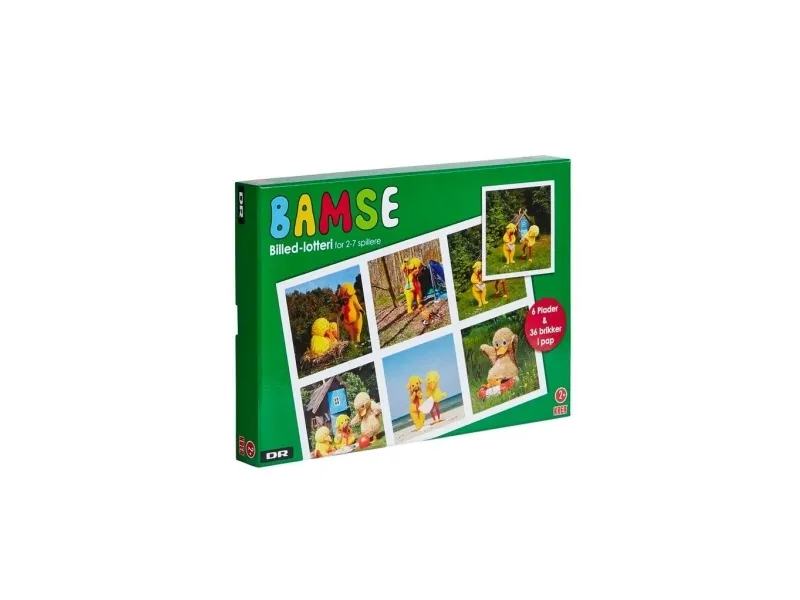 Bamse, Kylling og Ælling tager dig med ud på sjov i dette dejlige billedlotteri. Du er med dem i skoven, ved Bamses hus, på stranden og ved søen, og når Ælling skal ud og pjaske. Luna og Aske er også med. Billedlotteri træner genkendelses evnen hos barnet. Billederne er kendte fra TV ; DR Bamses billedbog.