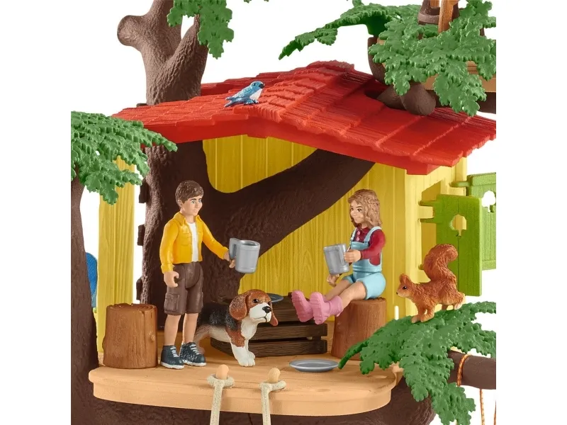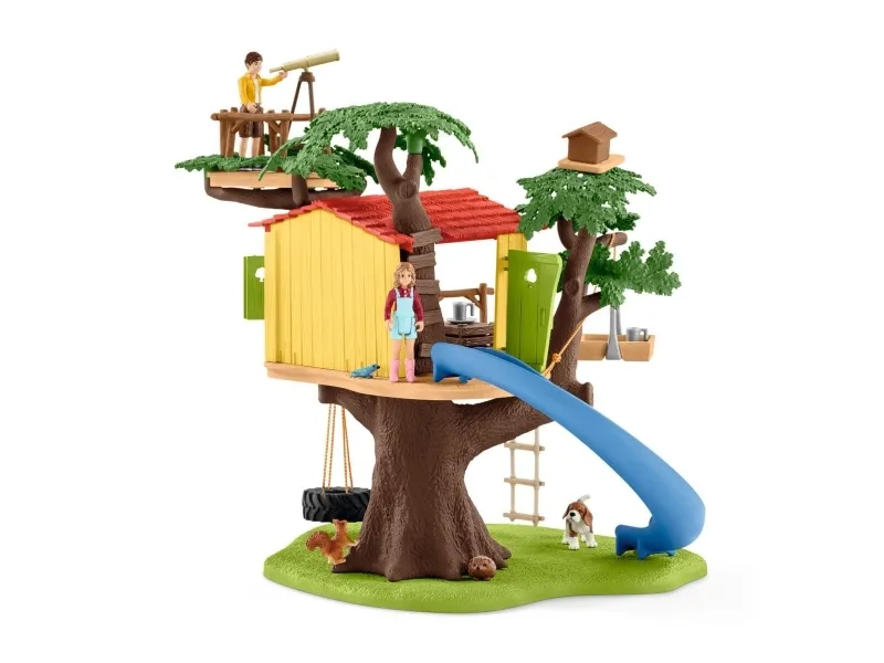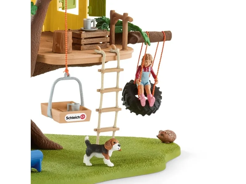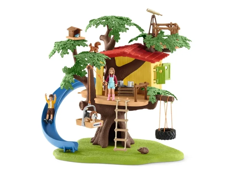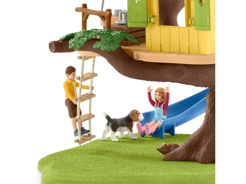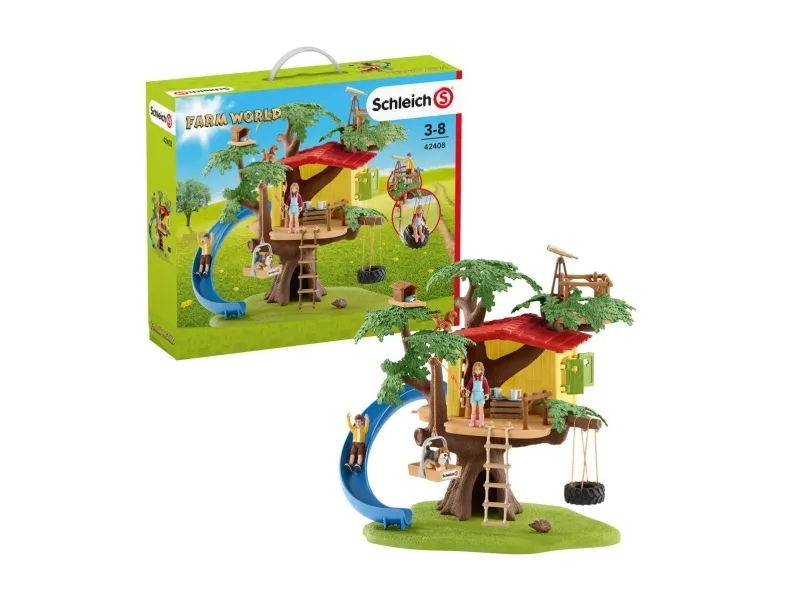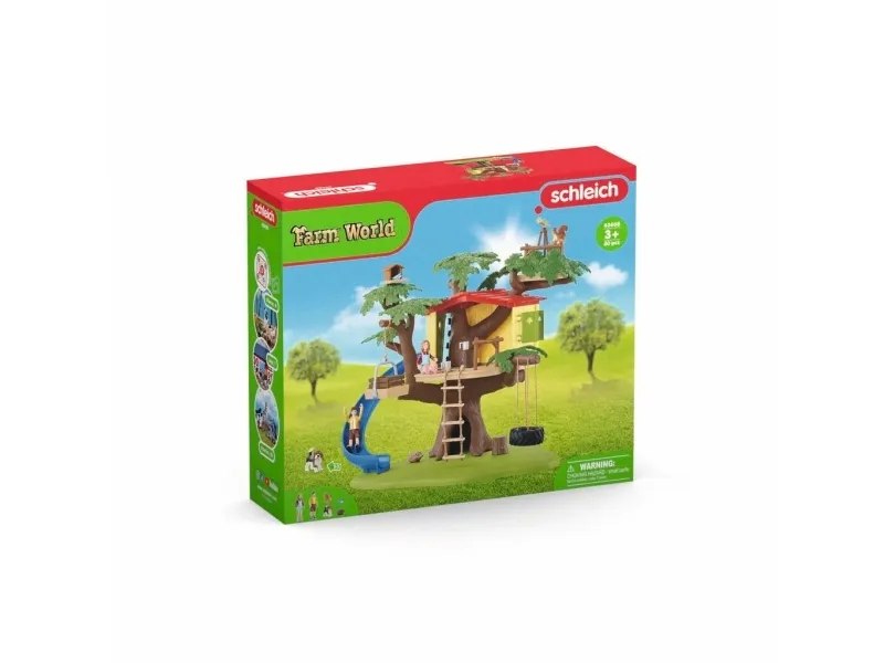 I Schleich-bondehuset kan Ben og Sarah leke i timevis og dra på piknik. Hvem har ikke drømt om en egen bondegård? Settet inneholder mange funksjoner for langvarig lek. Mens Ben ser på dyrene fra observasjonsplattformen, sklir Sarah på sklia. Hundevalpen venter på henne. Via stigen kan Sarah komme tilbake til huset i treet. Ved hjelp av trinsen kan den søte beaglevalpen lett transporteres til trehuset. Slik kan alle leken sammen. I den hule trestammen holder piggsvinet til, og den lille fuglen elsker å være i tretoppene mellom alt løvet. Med 2 menneskefigurer, 4 dyr og flott tilbehør. Settet er den ideale tillegget til 42407 bondehus med stall og dyr som selges separat. Schleich-figurene er alle naturtro og bidrar til pedagogisk riktig lek.