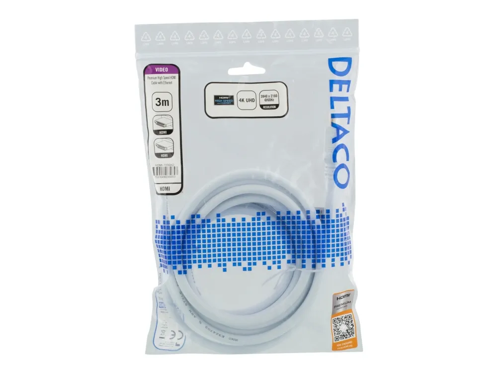 3 m HDMI Type A (Standard) HDMI Type A (Standard) Hankjønn Hankjønn Rett Rett Hvit 1 stykker 2.0 3840 x 2160 Ja 60 Hz Nei Ja Polybag