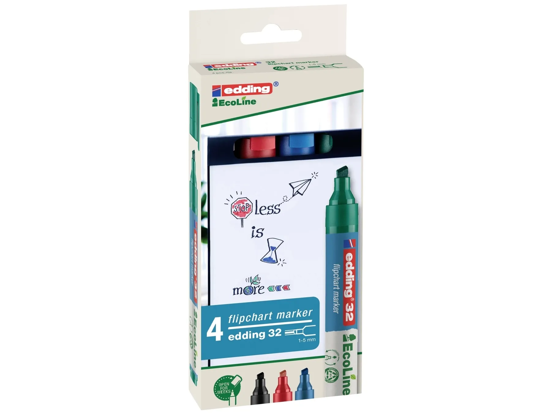 The highlighter edding 24 with chisel nib is the eco-friendly text marker from edding. A substantial proportion of these highlighters is made from renewable resources.\n\n- At least 90% of the highlighter cap and barrel are made from renewable resources\n- Ideal for marking and highlighting text on almost all types of paper\n- Text marker with water-based ink\n- Refillable with edding HTK 25 refill system\n- Chisel nib with approx. 2-5 mm stroke width\n- Neon colours: yellow, orange, pink, blue and green