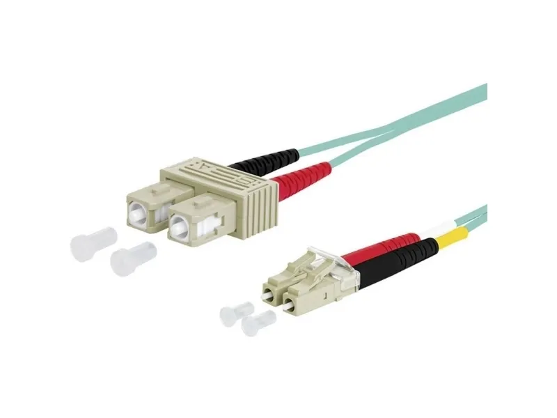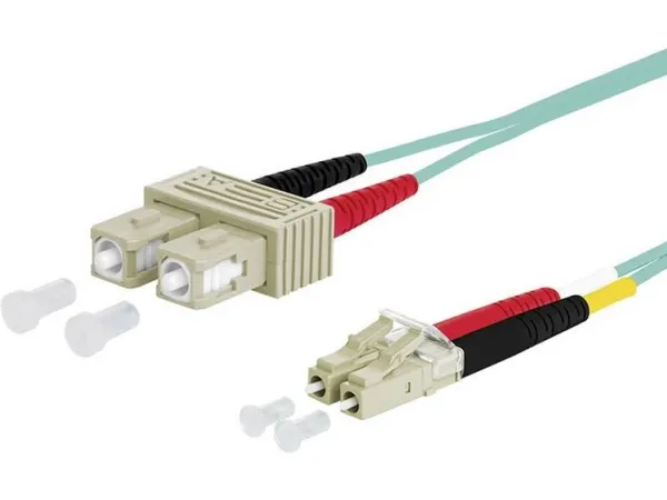Metz Connect opdat PK SC-D/LC-D OM3 aqua 1,0 m. Multimode patchkabel i-V(ZN)H 50/125 OM3 SC-D stik, LC-stik Laser-optimeret, bøjekølsomme multimode-fibre OM3, G50/125 µm i henhold til IEC 60793-2-10 type A1A.2 Kappemateriale halogenfri med lav røgudvikling LSHF-FR, flammehæmmende Duplexkabel som Zipcord (figur 8) Med to volladere og aramid som trækaflastning 100 % testet METZ CONNECT 151J1EOJO10E. Kabellængde 1 m. Lysledertype: OM3, tilslutning 1: 2x SC, tilslutning 2: 2x LC, huldiameter: 50 µm, stikforbindelsesdårlig: Han/Männlich, kabelfarve: Aqua