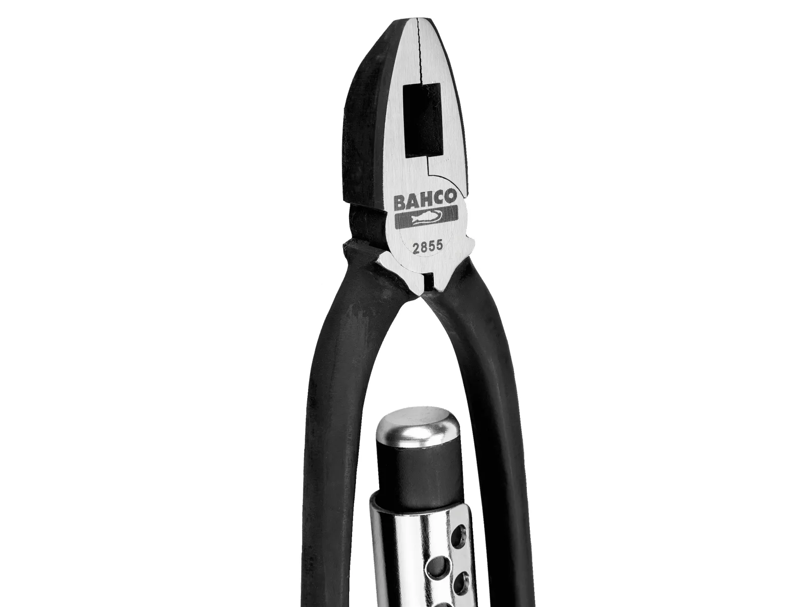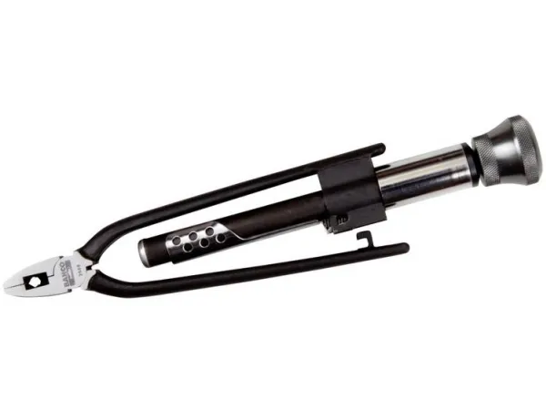 Drejetang, 285mm Bruneret, rustbeskyttelse. Højtydende stållegering. Gør det i løbet af få sekunder præcis virvler og sparer dermed betydeligt tid. For hver tråd- og verdrehungslange kan anvendes. Når tangen tråden rummer, kan trækkes ud og ind ved at trykke på drejeknappen enhver antal rotationer udføres. Den vendbare modeller gør brug af andet værktøj overflødig. En drejning af patenterede shift kabinettet ændrer de retning. Den mindre udførelse, der egner sig bedst til arbejde på svært tilgængelige steder. Dette værktøj bruges til sikring af kritiske, vibrationsanfalligen steder med metaltråd. Kæber til 30° vinklet og tænder, med skær. Max. Skærekapacitet: tråde op til dia. 1,04 mm til udførelse 2855 og 1,6 mm til udførelse 2855 D, også egnet til rustfrit stål.