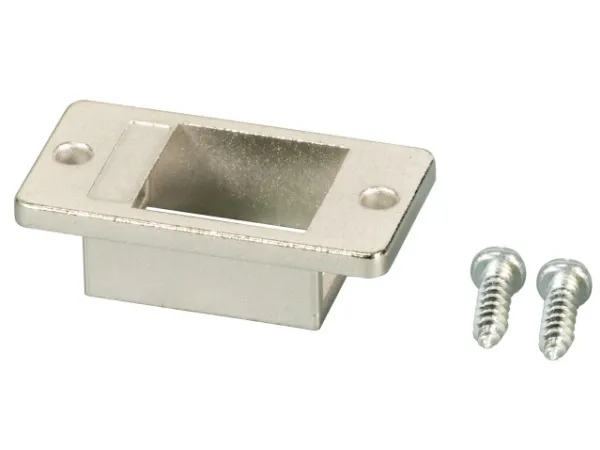 Features: Housing material: zinc-diecast Universal use on every flat surface/housing, cable duct or wood/metal cover Staight outlet: 0° Breakout hole: 24 x 18mm Dimensions: Length: 35.5mm, Width: 19.2mm, Height: 9.8mm Scope of delivery: Installation frame 1-Port (without modules), 2x installation screws