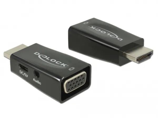 Delock Adapter HDMI-A male > VGA female with Audio - Videokonverter - HDMI - VGA - svart