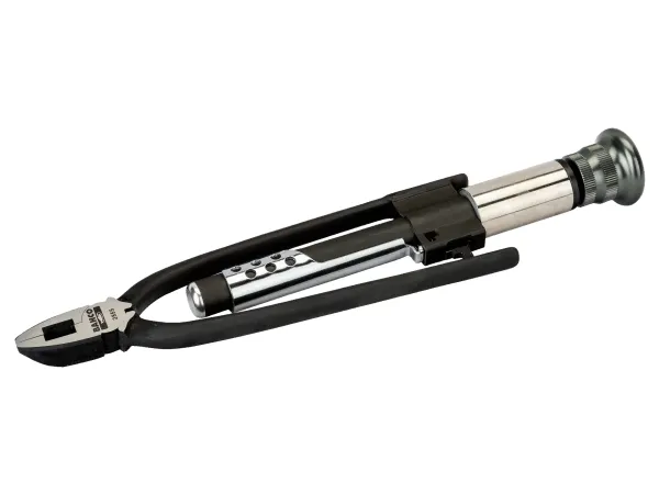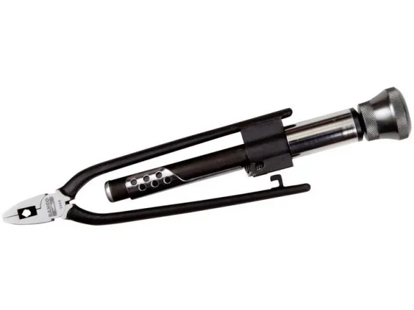 Drejetang, 235mm Bruneret, rustbeskyttelse. Højtydende stållegering. Gør det i løbet af få sekunder præcis virvler og sparer dermed betydeligt tid. For hver tråd- og verdrehungslange kan anvendes. Når tangen tråden rummer, kan trækkes ud og ind ved at trykke på drejeknappen enhver antal rotationer udføres. Den vendbare modeller gør brug af andet værktøj overflødig. En drejning af patenterede shift kabinettet ændrer de retning. Den mindre udførelse, der egner sig bedst til arbejde på svært tilgængelige steder. Dette værktøj bruges til sikring af kritiske, vibrationsanfalligen steder med metaltråd. Kæber til 30° vinklet og tænder, med skær. Max. Skærekapacitet: tråde op til dia. 1,04 mm til udførelse 2855 og 1,6 mm til udførelse 2855 D, også egnet til rustfrit stål.