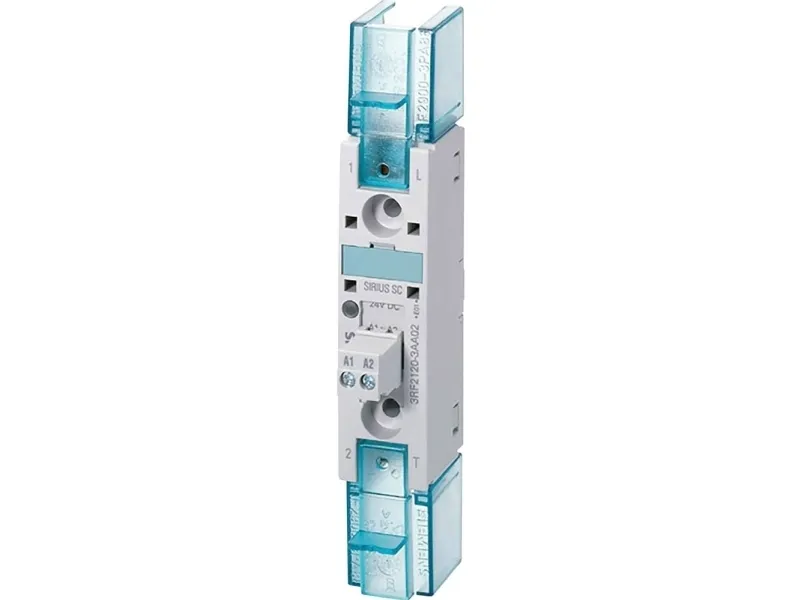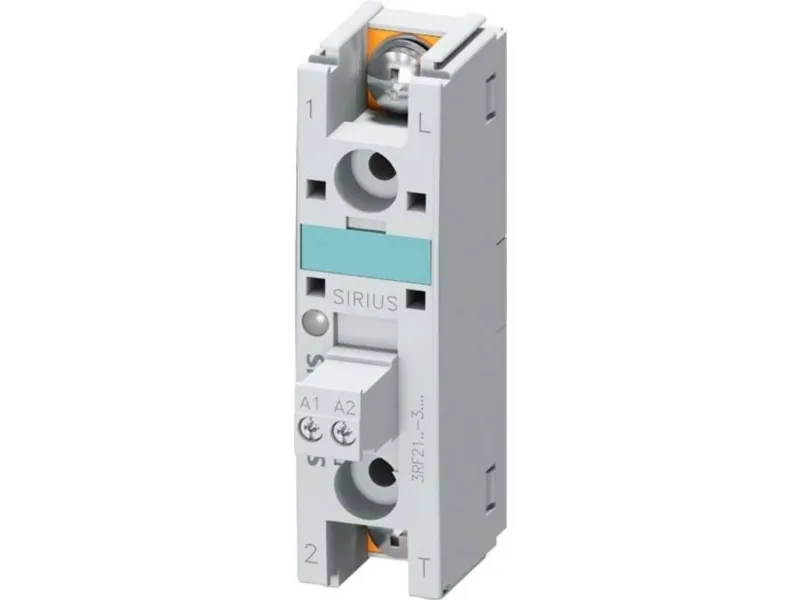 1-faset halvlederrelæ 3RF21 Semiconductor relay, 1-phase 3RF2 Overall width 22.5 mm, 50 A 48-600 V / 110-230 V AC Ring cable connection solid-state relay SIRIUS 3RF21 for switching resistive/inductive loads, e.g. of heaters or valves in a bottling plant. The devices are non-wearing and silent and are therefore ideal for noise-sensitive areas (offices, hospitals). They are also extremely reliable at high switching frequencies. The compact design saves space on the cooling surface. The solid-state relays can also be expanded for a wide range of applications by simply clicking on the standardized 3RF29 function modules. The devices are approved for worldwide use (e.g. IEC and UL/CSA). The solid-state relays are available as single-phase devices in two widths, or as three-phase devices. They are available for different power ratings and rated operating voltages. Designed for AC or DC operation, they are available with screw, spring-type or ring terminal lug connections. In addition to the 3RF29 function modules, control connectors and terminal covers are also available as accessories. Simple, efficient and always up to date - SIRIUS modular system.