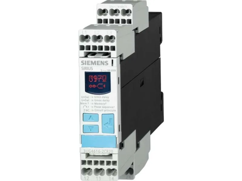 Overvågning relæ til 3-fasede netspænding fasesvigt 3x 160-690V Digitalt overvågning relæ til 3-fasede netspænding automatisk. Faserækkefølge korrektion fasesvigt 3 x 160 til 690 V AC, 50 til 60 Hz under- og uberspg. 160-690V Hysterese 1-20 V slukforsinkelse 0-20 s asymmetri 0-20% 1 W til Fasekontakt 1 W til netværksfejl federzugtechnik