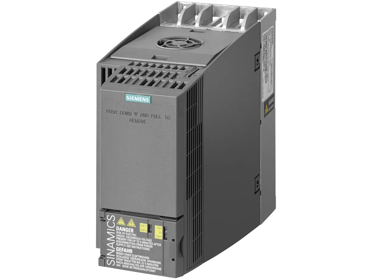 SINAMICS G120C, RS485, IP20 / UL open type, FSB, 3AC 380-480 V, 5,50 kW SINAMICS G120C nominel effekt: 5,5kW med 150 % overbelastning i 3 sek. 3AC380 480V+10/-20% 47-63Hz ufiltrerede I/O-interface: 6DI, 2DO, 1AI, 1 AO Safe torque-off integreret feltbus integreret: USS/Modbus RTU beskyttelsesklasse IP20/UL Open type størrelse: FSB Genåbningsbindere 196x 100 x 203 (Hxbxd) ekstern 24V frekvensomformer SINAMICS G120C den kompakte og alsidige frekvensomformer med optimal funktionalitet til kravene fra forskellige applikationer, som for eksempel til transportbånd, blandere, pumper, ventilatorer og kompressorer. Med den integrerede certificerede sikkerhedsfunktion Safe Torque Off (STO), sto via klemme/ med professionelle Safe, kan man undvære andre eksterne komponenter. Betjeningen/ibrugtagning sker hurtigt og nemt med PC'en via USB eller via en Basic Operator betjeningspanel, eller intelligent Operator panel. Tilslutning af drev er via standard fieldbus-systemer (PROFINET, profibus) og et kort slot til kloning af parametre sæt for en intuitiv serier ibrugtagning er til stede. Til forøgelse af energieffektivitet er omformer med en præcis, energi optimal vektor regulering udstyret SLVC og er udstyret med en automatisk flow nedsænkning. Den SINAMICS G120C dækker det trefasede spændingsområde 3AC 380 V til 480 V og er i 7 størrelser i et effektområde fra 0,55 kW op til 132 kW. Den frekvensomformer SINAMICS G120C kan ved hjælp af forskellige funktioner, som for eksempel tilslutningskabel, netfilter, bremse modstande, ac-drosler og yderligere tilbehør brugerkrav tilpasses individuelt. Omdrejningstallet variabler enheder er en integrerende del Totally Integrated Automation (TIA) og -spil optimal for eksempel med SIMATIC styringer sammen. Allrounderen SINAMICS G120C er efterfølgermodellen til produkt for MICROMASTER 420 frekvensomformer. SINAMICS - gennemgående drev-familien til ethvert anvendelsesområde.