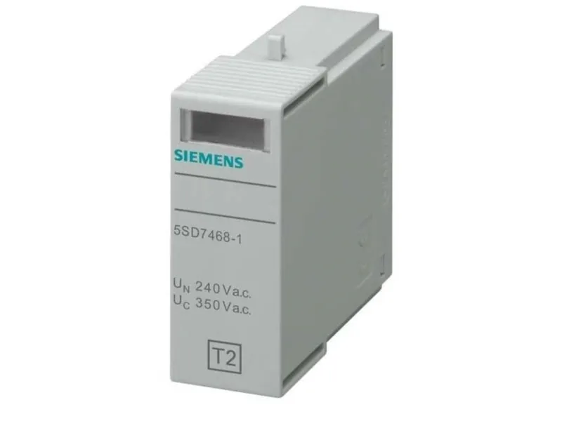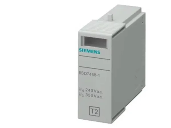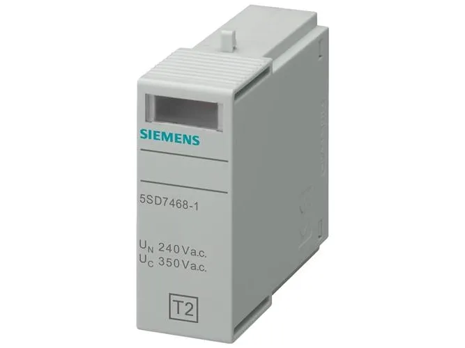 Stikdel type 2 L-N kravklasse C, UC 350V 1-polet til overspændingsAB. Stikdel type 2 L-N kravklasse C, UC 350V 1-polet til overspændingsafleder 5SD746. Overspændingsbeskyttelsesapparater til beskyttelse mod overspænding i elektriske anlæg. Overspændingsbeskyttelsesapparaterne fra Siemens, som vigtig del af SENTRON beskyttelseskomponenter til el-installationer giver effektiv beskyttelse ved blitz og overspændinger som følge af atmosfæriske påvirkninger eller koblingsprocesser. Komfortabel montage- og tilslutningsteknik samt et ensartet design er kendetegnet for denne enhedsfamilie. Uanset om det er til infrastruktur eller til industrielle krav, Siemens tilbyder overspændingsbeskyttelsesenheder til alle anvendelser og anvendelsesområder. Siemens overspændingsbeskyttelsesapparaterne udmærker sig frem for alt ved: 1. Effektiv investerings- og anlægsbeskyttelse mod blitz og overspænding. 2. Den rigtige lyn-/ og overspændingsbeskyttelse til ethvert formål (type1 til 3). 3. Fjernmeldekontakt til ekstern upload af tilstandsvisning. 4. Pålidelig sikkerhed ved installation takket være standardmæssigt integreret omslutnings- og berøringsbeskyttelse. 5. Værktøj løsnes fra din-skinnen uden brug af værktøj. 6. Klar og tydelig fejlvisning. 7. Datamatrix-kode foran på enheden giver hurtigt og nemt alle oplysninger om blitz- og overspændingsbeskyttelsen. 8. Optimal teknik til din sikkerhed - kun fra Siemens.