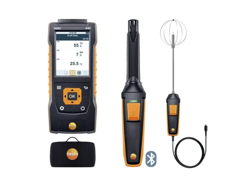 Testo 440 Behaglichkeits-Kombisæt med Bluetooth® Det 440 Feuchte-Set er egnet til målinger i lager-, køle- og arbejdsrum, ventilation kanaler samt ved kuldeanlæg og varmepumper.