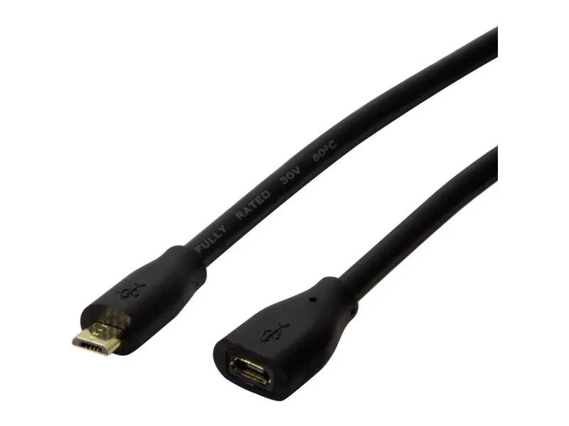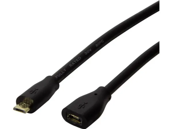 The Micro-USB-B extension cable extends your charging and data cable and transfers data at a transfer rate of up to 480 Mbps.