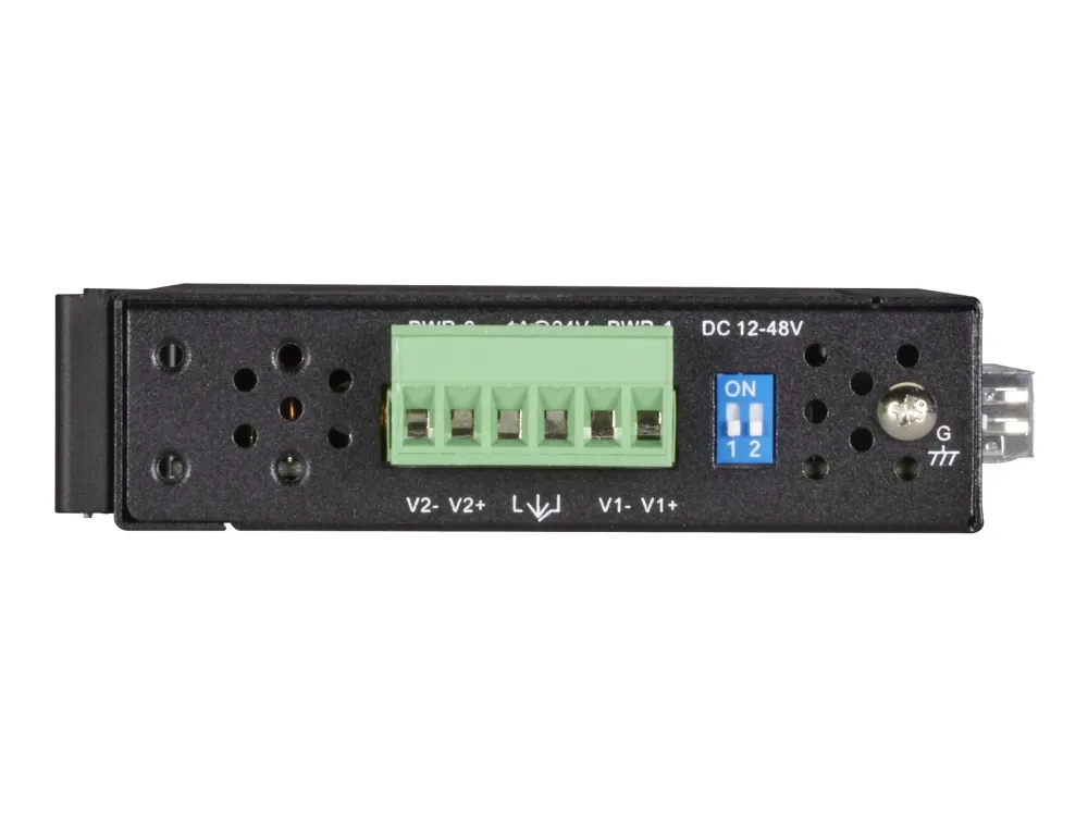 For redundancy, the switch has two DC power inputs. If one power source fails, the switch automatically falls over to the second power source. In addition, a smart alarm will alert you in case of a power failure.