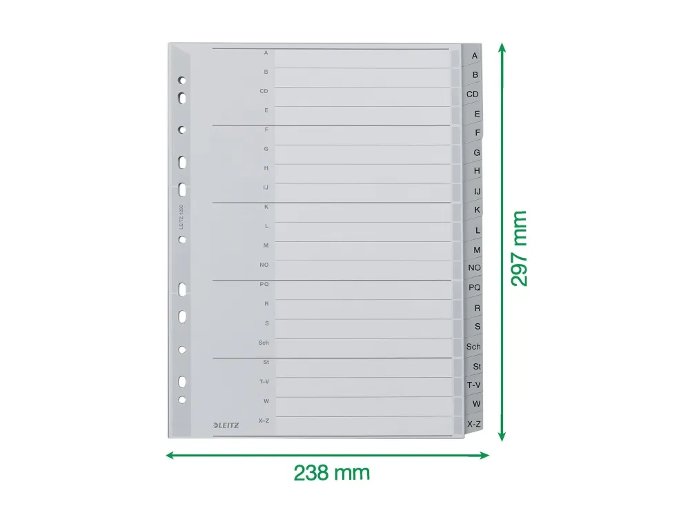 Leitz - inndeler - 20 deler - for A4 - med fliker - grå