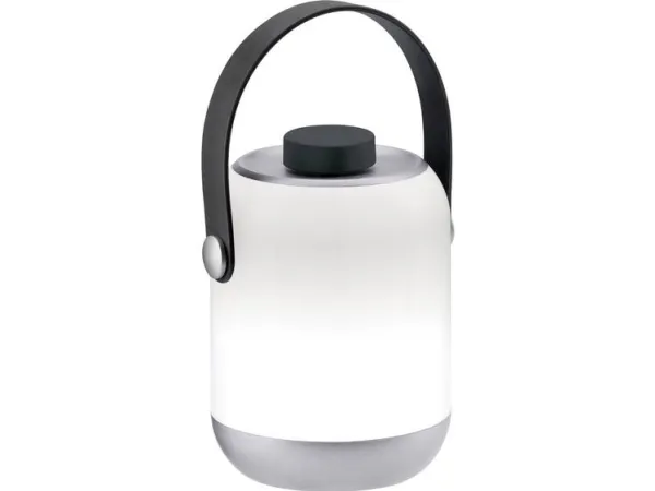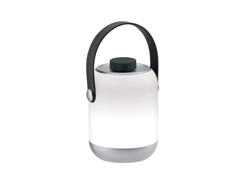 Mobile table luminaire Clutch IP44 Chrome matt dimmable, battery operation Charge, pack and use wherever you go: Whether in a standing or hanging position, the Clutch Mobile table luminaire provides pleasant light wherever you go.