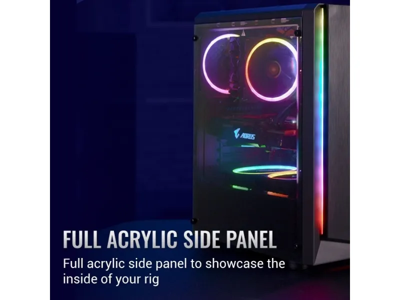 FULL ACRYLIC SIDE PANEL Comes with a full acrylic side panel to showcase the inside of your rig.