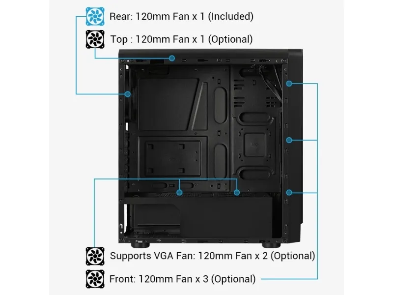 AIR COOLING Supports air cooling in the front, top, and rear of the case to enhance cooling performance.