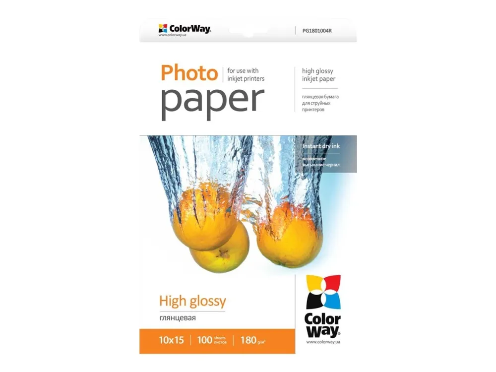 ColorWay high gloss photo paper for inkjet printing. Paper has smooth, glossy and water-proof surface. It quickly absorbs dye inks. When using pigment inks it is recommended the print dry before handling to prevent the ink from rubbing off or smearing. Prints using bright, saturated colors and various different tints. Store in a cool, dry place and keep away from direct sunlight. Storage temperature from 5°C to 25°C. Best if used within 5 years from manufacturing date. Date of production is on package. Paper does not contain any harmful chemicals. Pictures should be stored in photo albums or picture frames to maintain quality.