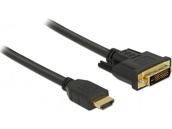 This HDMI to DVI cable by Delock supports the data transfer in both directions. Thus it can be used to connect a DVI monitor or projector to the HDMI interface of a PC or laptop or to connect an HDMI monitor or projector to the DVI interface of a PC or laptop.