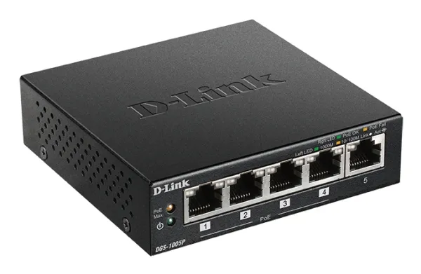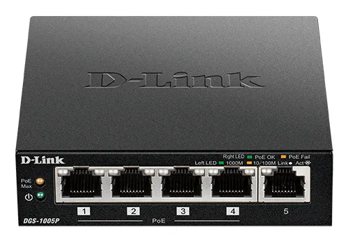 D-Link DGS-1005P 5-Port Desktop Gigabit PoE+ Switch gjør det mulig å koble Power over Ethernet (PoE)-enheter som trådløse aksesspunkter (AP-er), nettverksvideokameraer og IP-telefoner til nettverket. DGS-1005P er utviklet med tanke på hjemmebrukere og småbedrifter, og er kompakt og stillegående, noe som gjør den ideell for de fleste rom og kontorer.