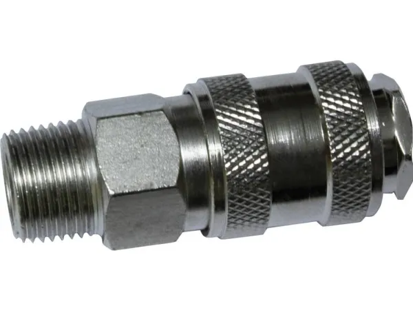 Kobling BL 3/8 tommer AG løs Egenskaber: · lynkobling med 3/8 udvendigt gevind · universelt passende EU-stiksystem dermed passende til alle kompressorer · førsteklasses kvalitet made in Germany · enhåndsbetjening · nominel bredde 7,2 · materiale: Messing