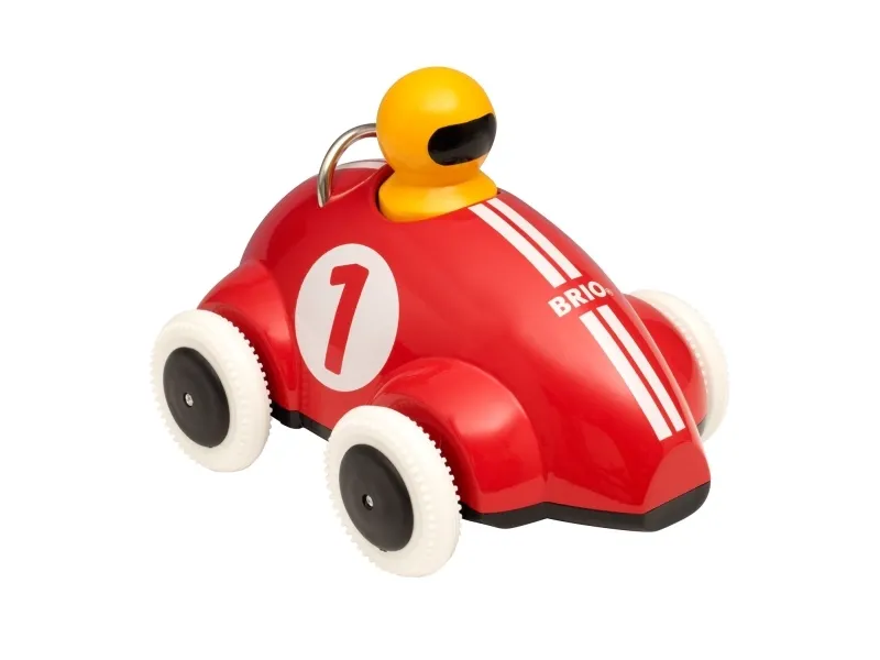 Bare utseende vil få fingrene til å klø etter å ta tak i den, kjenne på den og sende den av gårde på gulvet hjemme. Trykk ned føreren så drar bilen i vei! Trykk og kjør-racerbilen tilbyr moro og underholdning som også stimulerer aktivitetsbehov og finmotorikk.