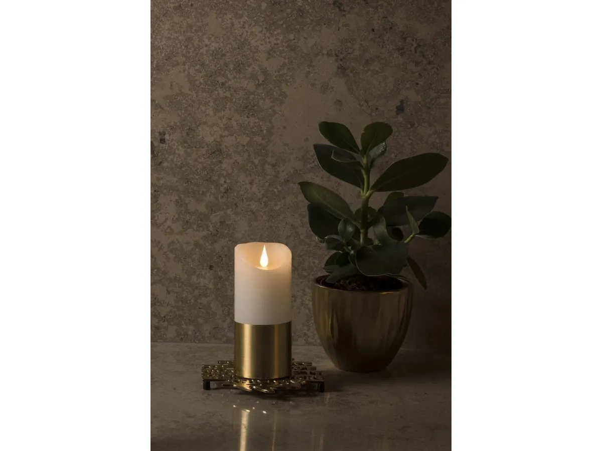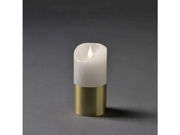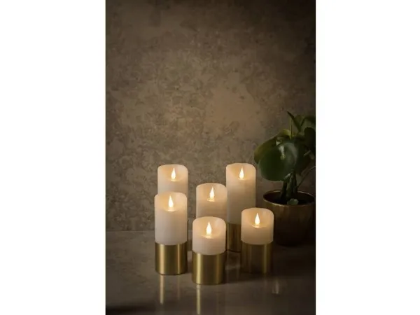 LED-lys i ægte voks, hvid, messingfarbener omslaget