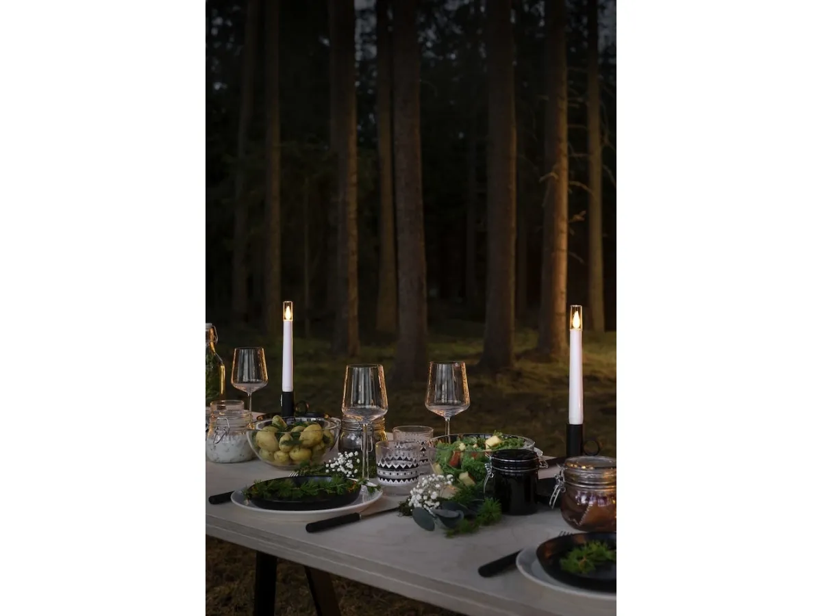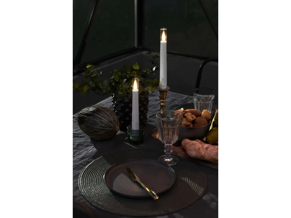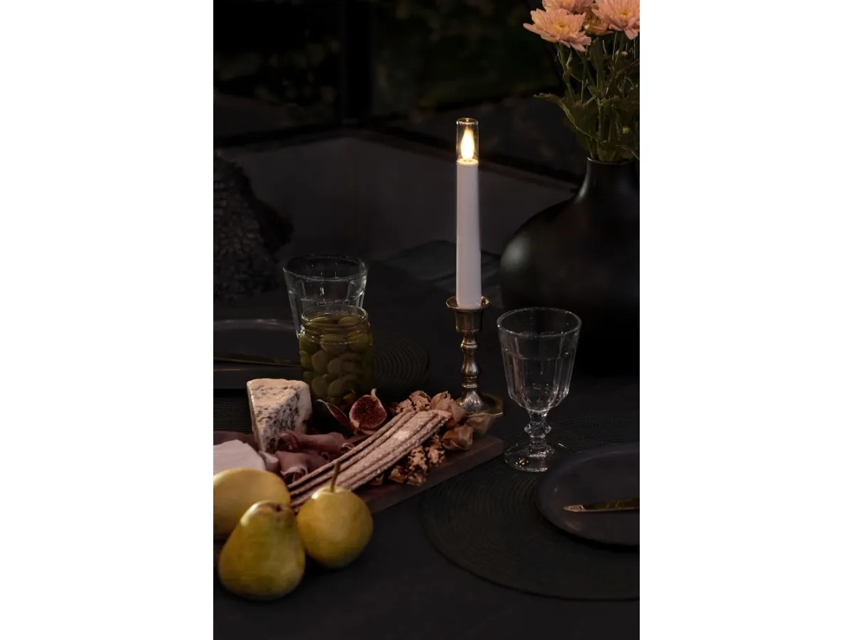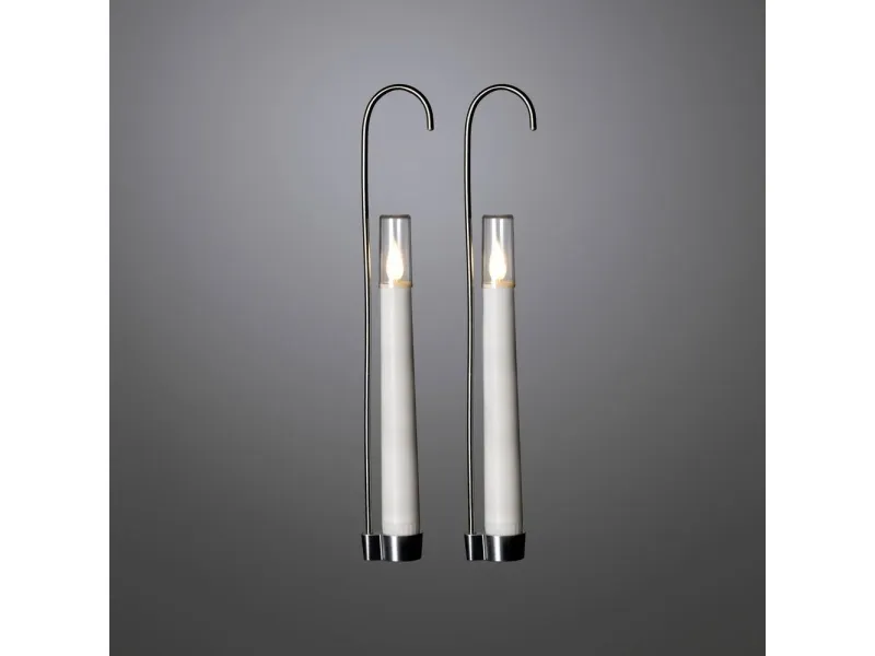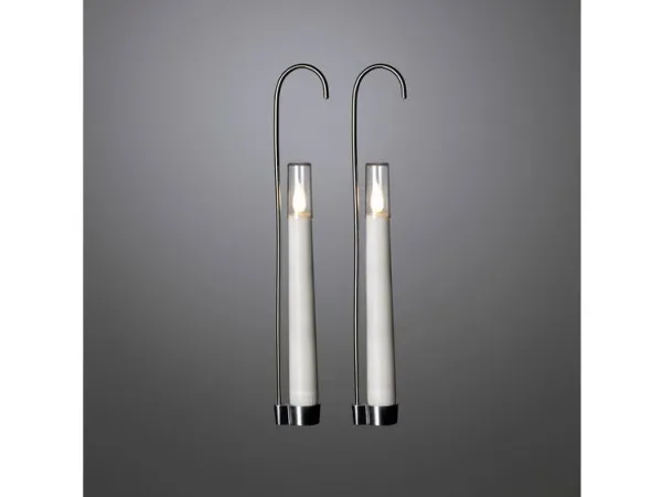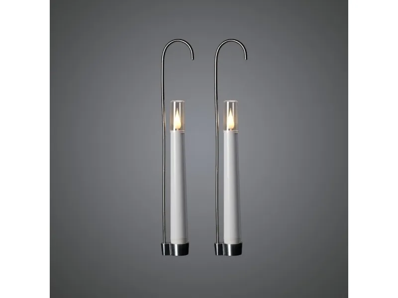 LED stearinlys, hvid, sæt med 2 stk. med gløderørsholder, med 3D flamme Hvid · Med gløderørsholder · Med 3D flamme · 2-8 timers timer · Lysdæmper og fjernbetjening · 2 varme, hvide dioder · Batteridrevne · Udendørs. Stilfuld kan stearinlys i graner kæppe nu virkelig ikke mere ud! Denne elegante, slanke, 30,5 cm høje LED-stearinlys virker med de tredimensionale flammer, hvor hver en varm hvid diode blinker, forbavsende ægte - et unikt design-highlight det ethvert miljø. Den ekslusive gløderørsholder i rustfrit stål-look bidrager lysene som på hænder og giver med sit store svungne kroge sikkert greb i grene. Det sæt med 2 stk. kan du nemt via en fjernbetjening til- og frakobling eller dæmpe lyset. Hvis du ønsker endnu mere komfortabelt, du skal blot bruge timer, som du enten kan indstilles fra 2 - 8 timer. En umiskendelig og holdbart varemærker produkt, som giver dig og dine kære mange års fornøjelse fotografifornøjelse. Firmaet Konstsmide er siden 1942 til at lave førsteklasses lys dekorationer til indendørs og udendørs brug specialiseret og har været 1999 massgeblicher impulsgiver til innovative, holdbare og sikker LED-løsninger.