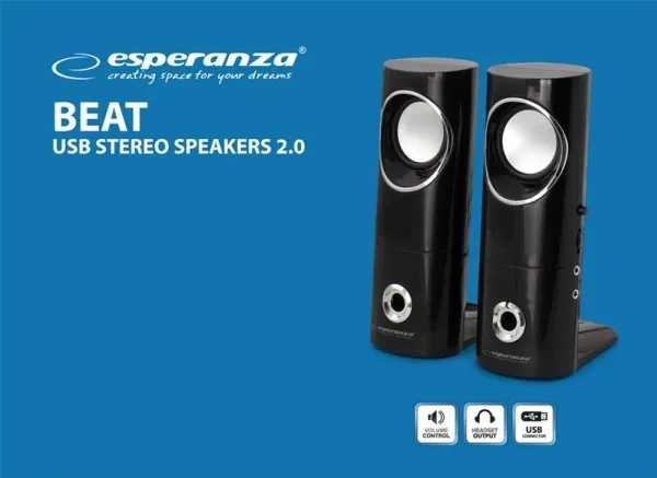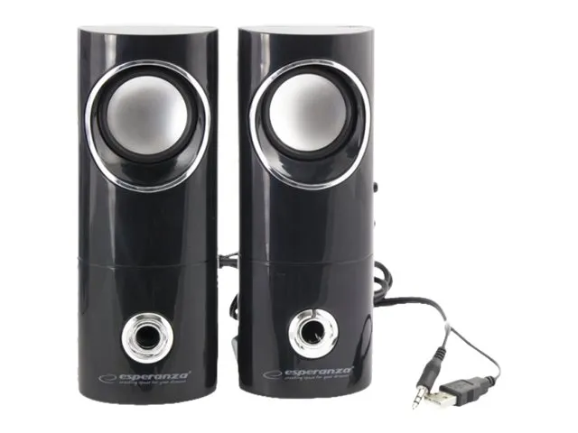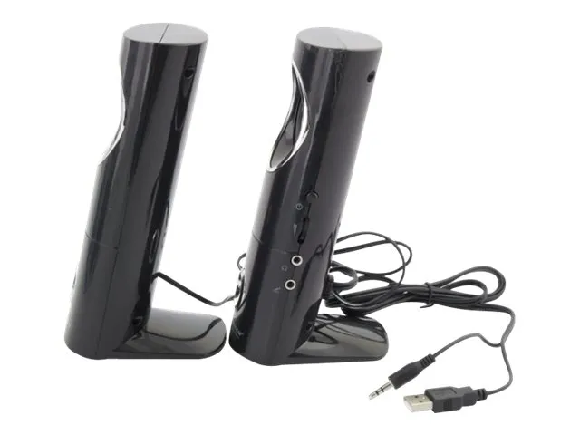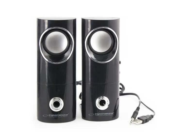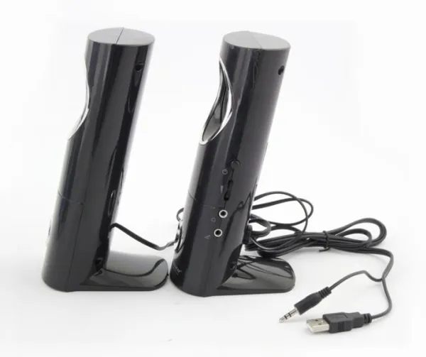 High-quality stereo speakers for notebooks and desktops. They provide clear and natural sound quality. The elegant design makes them fit well at your desk with LCD monitor and other accessories. They work well with all computer units with speaker and USB outputs. They are equipped with built-in volume control and headphone output. High-quality materials used for their manufacture protect against static electricity and electromagnetic interference.