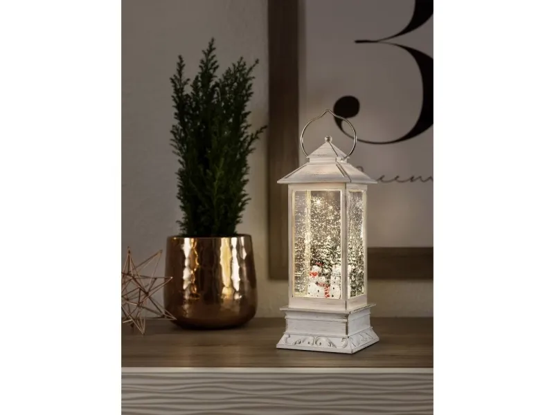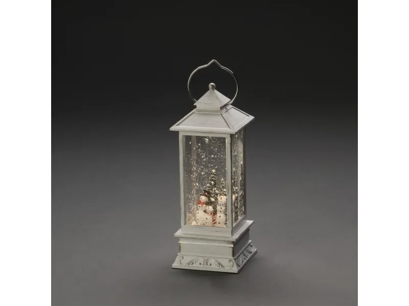 Led-lanterne snemænd Snedækket · Med afbryder. Let it Snow! Denne vandfyldte sneelader af høj kvalitet fortryller med nostalgisk bestrøning. Næsten svært lys hvirvler den hvidskinnende pragt rundt om den romantiske juleserie og reflekterer dioden varmt, hvidt lys. Synet af julefigurer gør hjertet langt væk og får os til at opleve julen igen. Et meget eksklusivt og velsmagende designet Nostaldeobjekt, der fortjener et ganske særligt sted i dit interiør. Takket være strømforsyningen med 3 C-batterier skal du ikke gå på kompromis, når der skal vælges plads. Du vil også hurtigt sætte pris på en 5h-timer, den sørger for, at lyset slukkes automatisk om aftenen efter 5 timer, for at få den oplyst til tiden næste aften. Et kvalitetsprodukt med lang levetid, som vil give dig og dine kære glæde i mange år. Firmaet Konstsmide har siden 1942 specialiseret sig i at lave førsteklasses lysdekorationer til indendørs og udendørs brug og har siden 1999 været toneangivende inden for innovative, holdbare og sikre LED-løsninger.