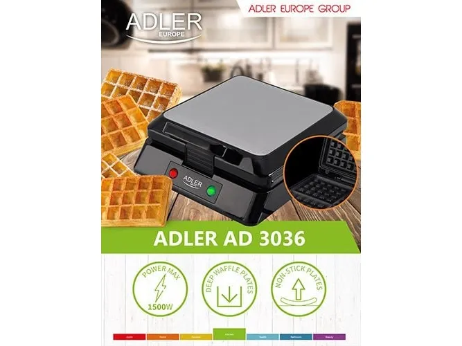 Sweet waffles with whipped cream and fresh fruit are your favourite type of dessert? Do you prefer homemade sweets that are healthier and do not require a lot of work? Are you looking for a device that will help you prepare perfectly crispy waffles under few minutes? Waffle maker 1500 W ADLER AD 3036 will certainly meet the needs of the biggest fan of sweet pastries! High quality, classic design, the simplicity of use and storage are its greatest advantages! You simply must have it in your kitchen!