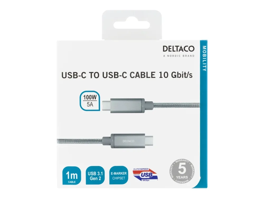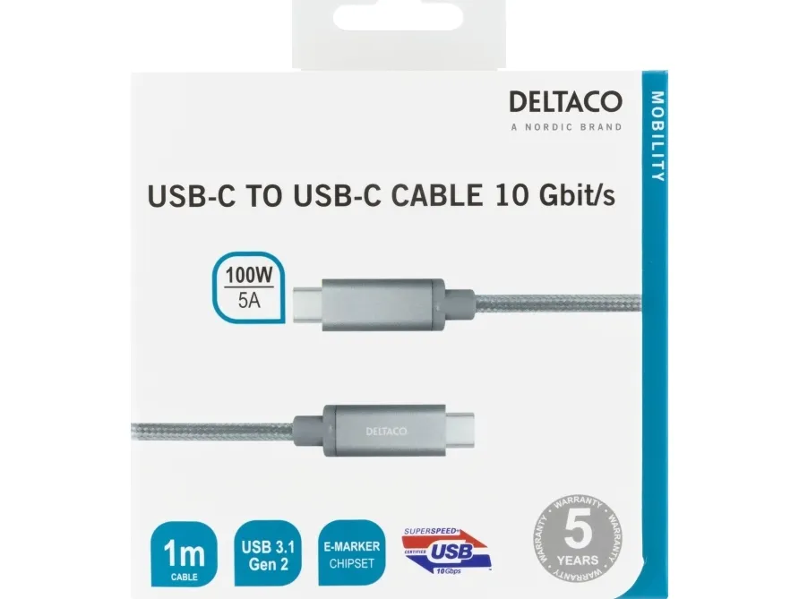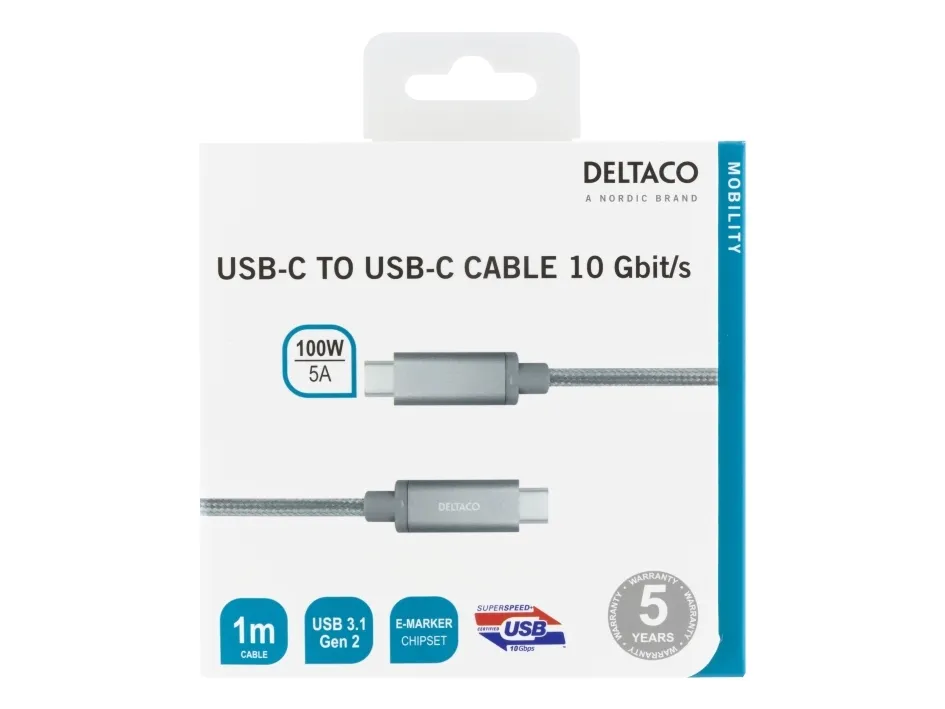 USB Power Delivery (5 A, 100 W), flettet, 10 Gbps-datahastighet
