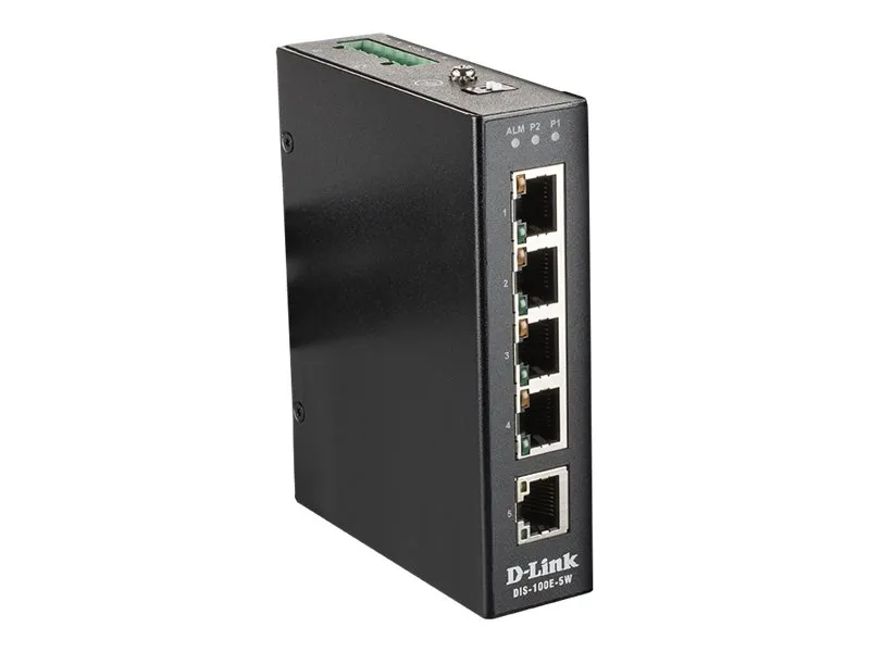 D-Link DIS 100E-5W - Switch - ikke-styrt - 5 x 10/100 - DIN-skinnemonterbar, veggmonterbar - DC-strøm