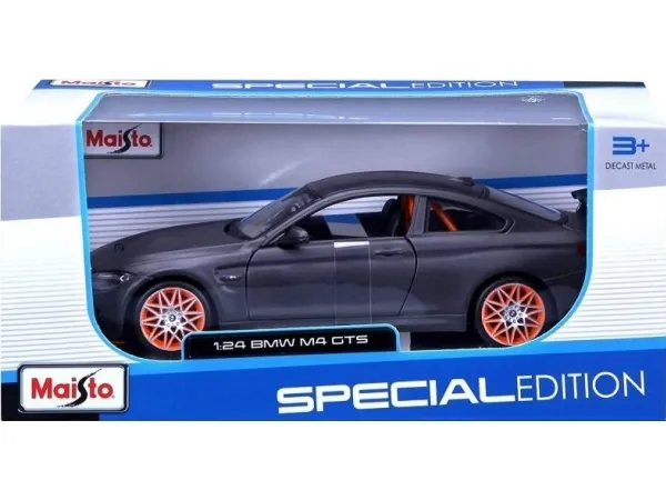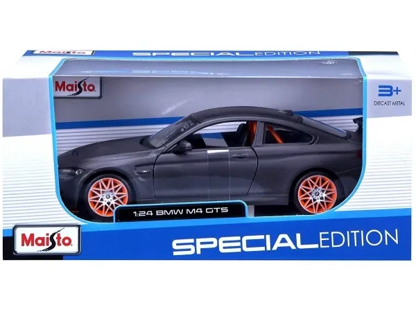 BMW M4 GTS Metal Grey 1:24. Maisto's 1:24 biler er altid i høj kvalitet med en flot og imponerende detaljegrad. Modellen her er et eksempel på hvor autentiske og tro mod originalen bilerne fra Bburago er. Døre, front- og bagklap kan selvfølgelig åbnes og åbenbarer de flotte detaljer. En model for såvel samler samt små og store legebørn. Længde ca. 20 cm. Støbt metal og plastikdele. Leveres i æske med vindue. Fra 3 år.