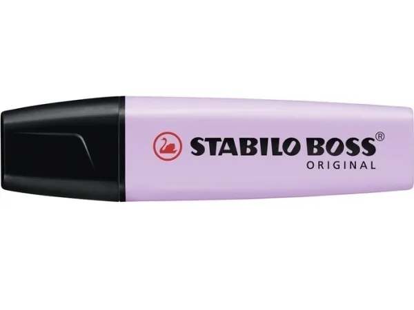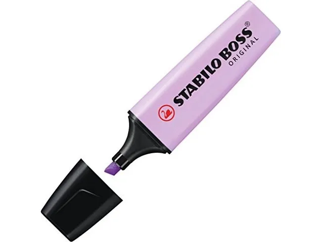 STABILO BOSS Europe's Number 1 highlighter - has had a pastel makeover. With the same chiselled tip as our STABILO BOSS original which can draw broad lines, highlight words, underline text. Its distinctive design stops the highlighter from rolling off tables so it's always where you left it. As with all BOSS highlighters it has anti-dry-out technology: meaning that the cap can be left off for up to 4 hours without it drying out.\n- STABILO BOSS Original highlighter now available with 6 new pastel colours\n- STABILO Anti-Dry Out Technology: 4 hour cap off time\n- Refillable\n- Wedge tip draws broad lines, highlights and underlines