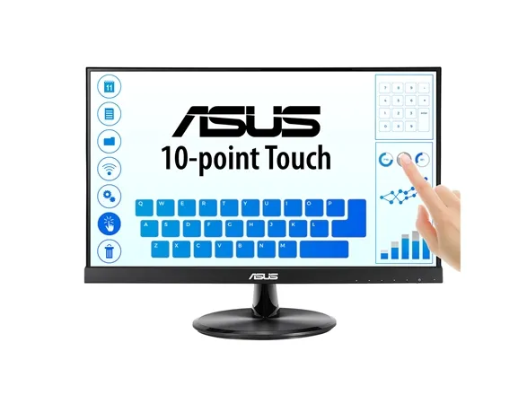 The 21.5" ASUS VT229H monitor supports 10-point touch for virtual keyboards and multi-touch applications. With support for HDMI and VGA, the VESA-mountable VT229H comes with ASUS exclusive Eye Care Technology to reduce eye fatigue via flicker-free backlighting and blue light filtering during day to day or commercial use.