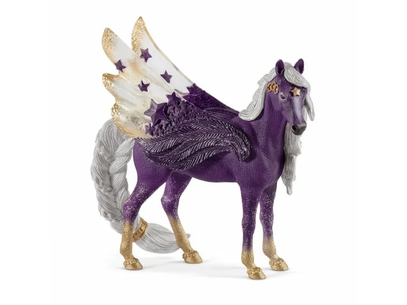 Den vidunderlig vakre stjerne-Pegasus-hoppen er ikke av denne verden. Hun stammer fra universets uendelighet, det ser man på henne. Hun gjemmer på hemmeligheter som vi ikke en gang aner om. Hennes ytre virker litt magisk, som om hun nettopp har steget ned fra stjernehimmelen. Hun og familien hennes, den stolte måne-enhjørning-hingsten og det søte stjerneskudd-enhjørning-føllet, danner en fortryllende enhet.