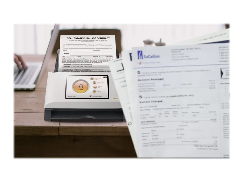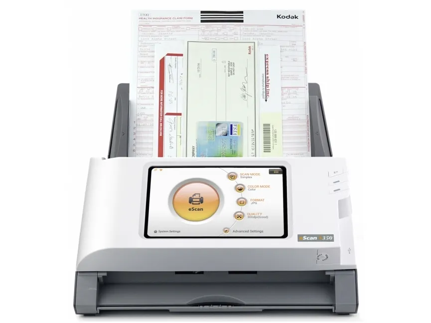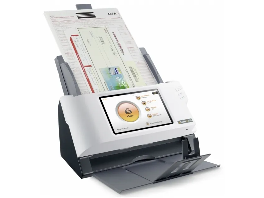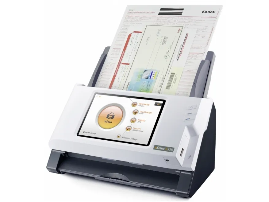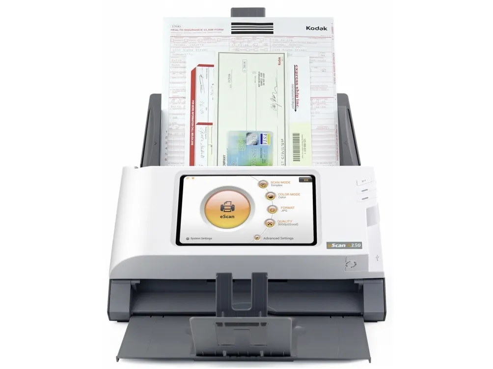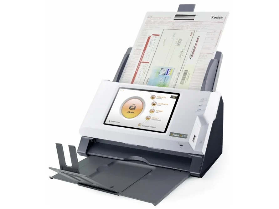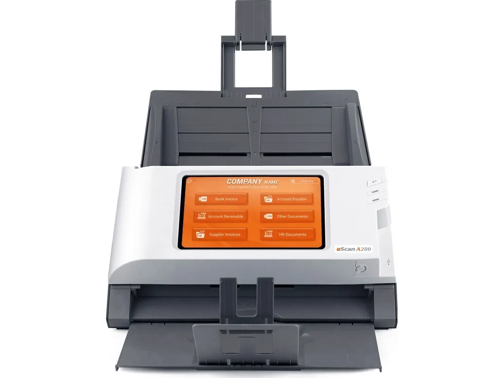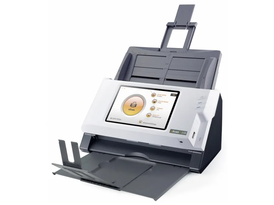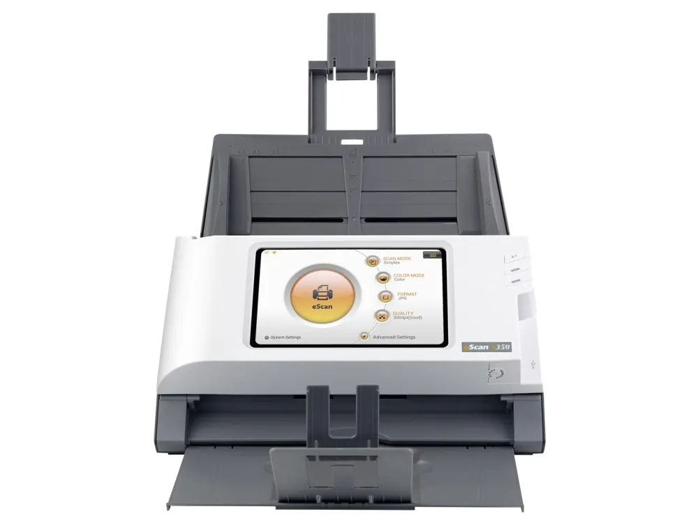 Standalone Network Scanner No PC required\n\nBuilt-in touch screen, Wi-Fi and Ethernet\nSimplify your customers’ business process management with eScan. Scan and streamline to connected third-party software once and you will be prompt to save the workflow as a Job Button. Group job buttons by users or departments for easier access.