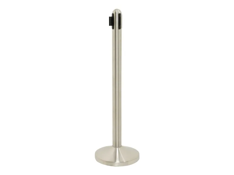 Securit® Afspærringsstolpe børstet stål med sort udtræksbånd