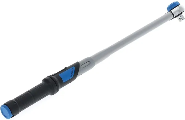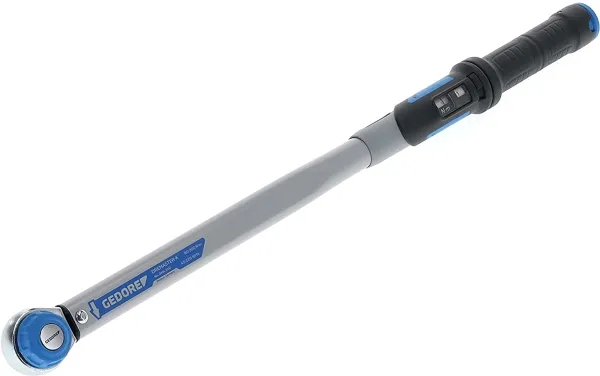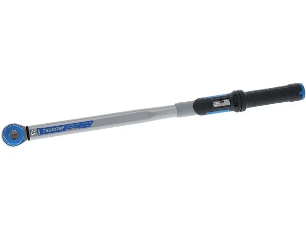 Use: Controlled screw tightening in the most common range of 20 - 850 N·m / 15 - 630 lbf·ft (guide for screws M7-10.9 to M24-8.8. M30-5.6) Adjustable, releasing and sturdy tubular torque wrench with integrated ratchet and with square drive for industry and the trades Features: Classified according to DIN EN ISO 6789-2:2017 Type II Class A, incl. traceable test certificate, calibrated to a maximum permissible deviation of +/- 3 % and thus more precise than the +/- 4 % required by the standard For controlled bi-directional tightening Models DMK: 1/2" mushroom head interchangeable square with push-button releasing and a ball-locking mechanism. From Model No. DMK 400 with 3/4" push-through square and a pin-locking mechanism Sturdy, varnished tubular steel construction, with zinc-plated ratchet head and top-grade plastic parts Ergonomically shaped plastic handgrip with calibration aid Change-over between N·m main scale and lbf·ft ancillary scale to avoid reading errors when setting the torque wanted With micrometre scale for main N·m scale for setting interim values Release system triggers a tactile and audible signal Ergonomic system for torque adjustment with reference symbol Provision for rapid setting with hexagon allen key, not included Secured adjusting/setting system