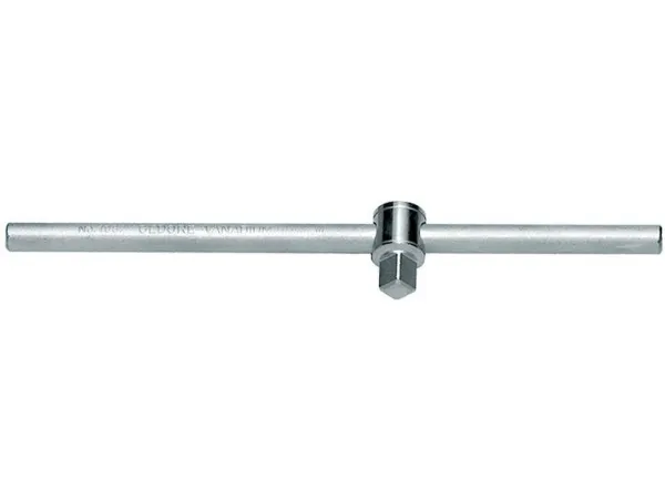 Acc. to DIN 3122, ISO 3315. For hand-operated sockets with square drive as per DIN 3120, ISO 1174, with ball locking device. Gedore vanadium steel 31CrV3, polished, chrome-plated.