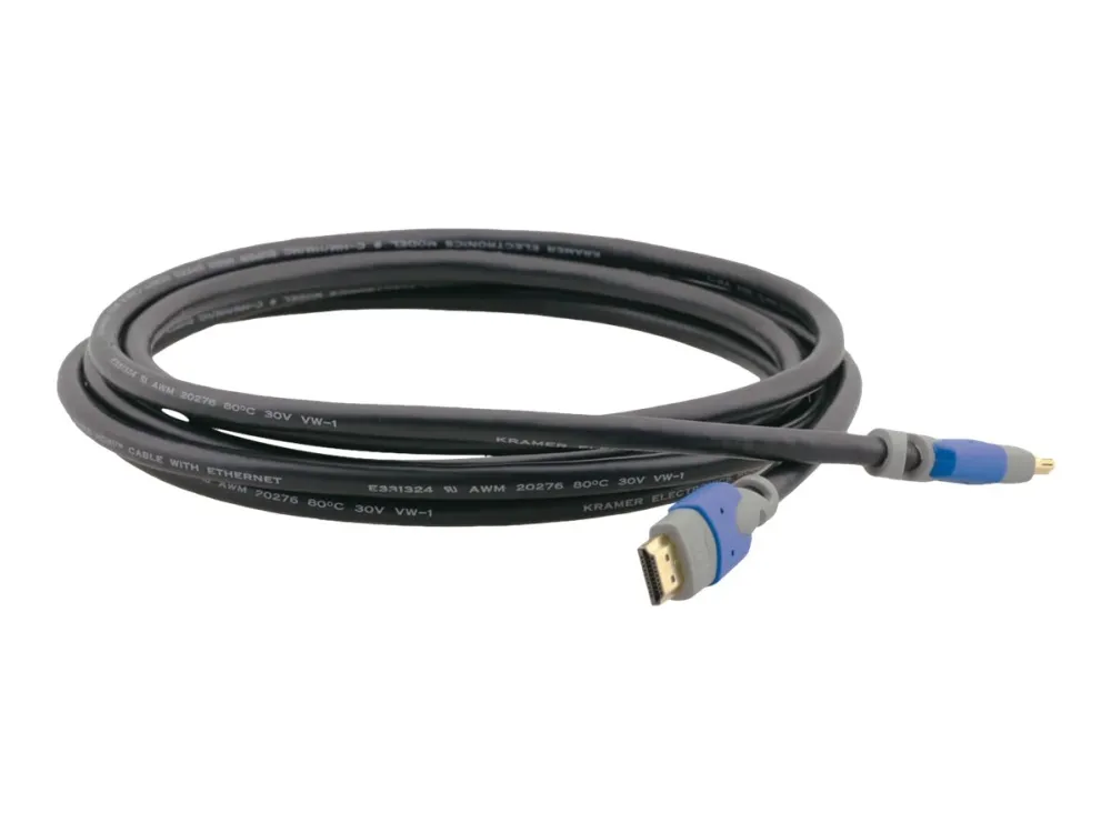 Kramer's C-HM/HM/PRO HDMI cable delivers high-speed, high-performance digital video and audio with impeccable impedance stability, low skew, high signal integrity, and noise immunity for up to 4K@60Hz (4:4:4). With pro-grade heavy-duty construction, triple-shield bonded pairs and K-Lock connectors, PRO series cables are robust and reliable for the most demanding applications.\n\n- Max. Data Rate — 18Gbps\n- Max. Resolution — 4K@60Hz (4:4:4)\n- Deep Color — Supports 24–bit, 30–bit, 36–bit and 48–bit (RGB or YCbCr) color depths. Best for multimedia applications or home cinema and surround systems\n- Multi–Channel Audio Support — Supports audio stream for external decoding by AV receivers and automatic audio syncing capabilities\n- High Quality Connectors — 24K gold–plated, corrosion–resistant and best possible connectivity\n- K–Lock Pull–Resistant Connectors — Provides 15lbs of restraining force for a non–slip connection\n- Shield — Triple overall shield against EMI/RFI interference\n- Varied Selection of Lengths — Available in versions of 0.9 to 19.8m (3, 6, 10, 15, 25, 35, 50 and 65ft)