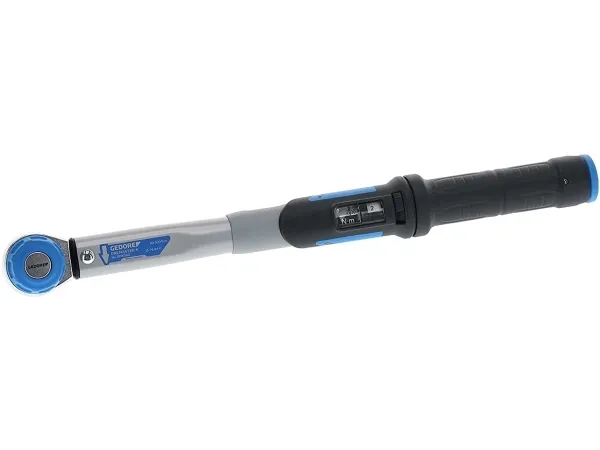 Use: Controlled screw tightening in the most common range of 20 - 850 N·m / 15 - 630 lbf·ft (guide for screws M7-10.9 to M24-8.8. M30-5.6) Adjustable, releasing and sturdy tubular torque wrench with integrated ratchet and with square drive for industry and the trades Features: Classified according to DIN EN ISO 6789-2:2017 Type II Class A, incl. traceable test certificate, calibrated to a maximum permissible deviation of +/- 3 % and thus more precise than the +/- 4 % required by the standard For controlled bi-directional tightening Models DMK: 1/2" mushroom head interchangeable square with push-button releasing and a ball-locking mechanism. From Model No. DMK 400 with 3/4" push-through square and a pin-locking mechanism Sturdy, varnished tubular steel construction, with zinc-plated ratchet head and top-grade plastic parts Ergonomically shaped plastic handgrip with calibration aid Change-over between N·m main scale and lbf·ft ancillary scale to avoid reading errors when setting the torque wanted With micrometre scale for main N·m scale for setting interim values Release system triggers a tactile and audible signal Ergonomic system for torque adjustment with reference symbol Provision for rapid setting with hexagon allen key, not included Secured adjusting/setting system
