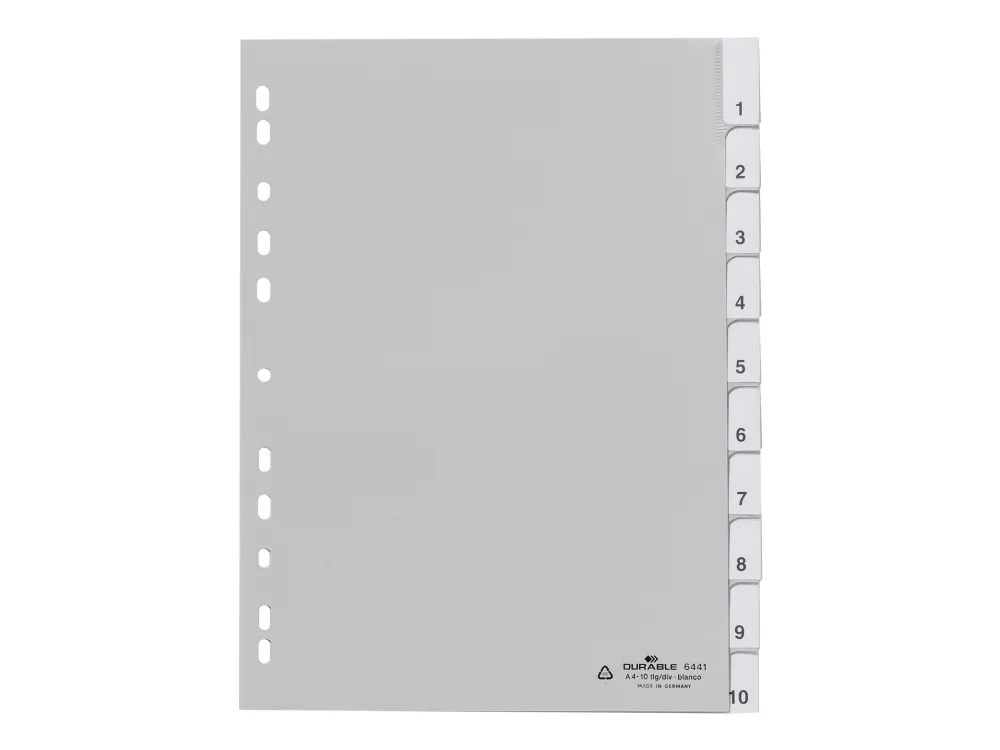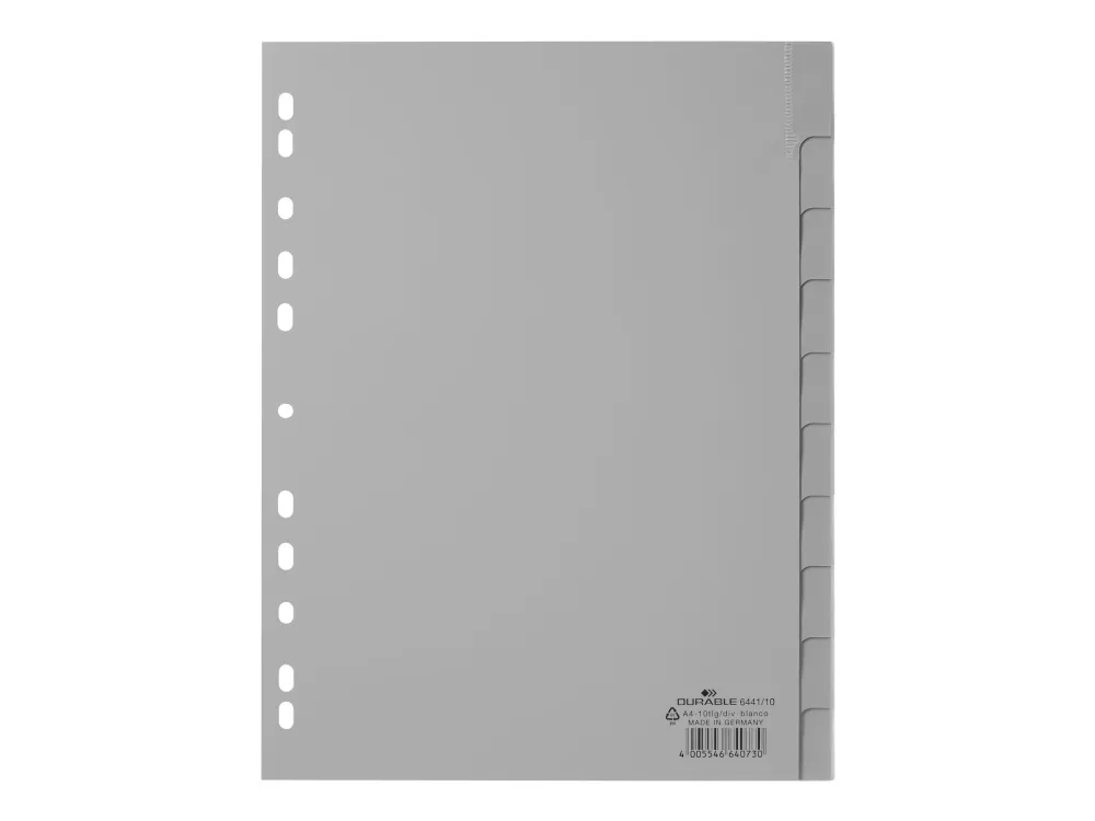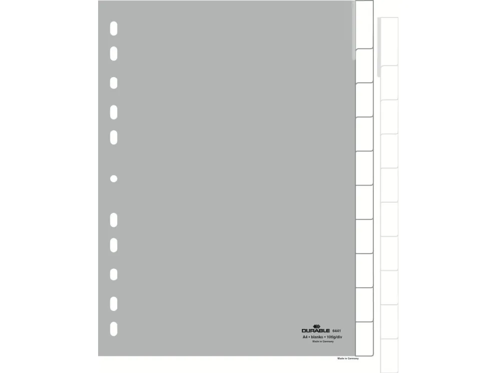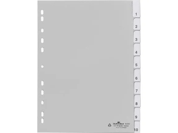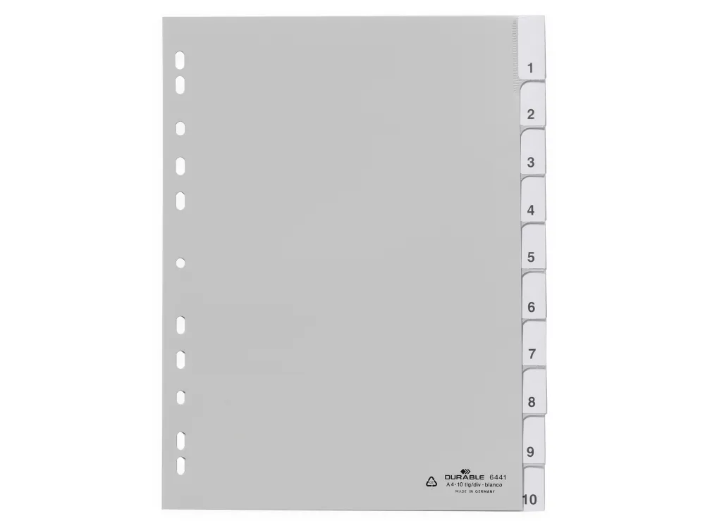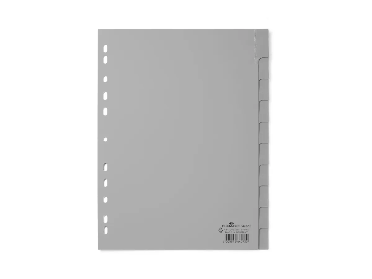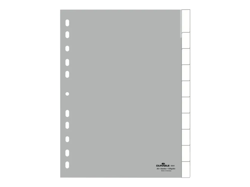 DURABLE - inndeler - 10 deler - for A4 - med fliker - grå