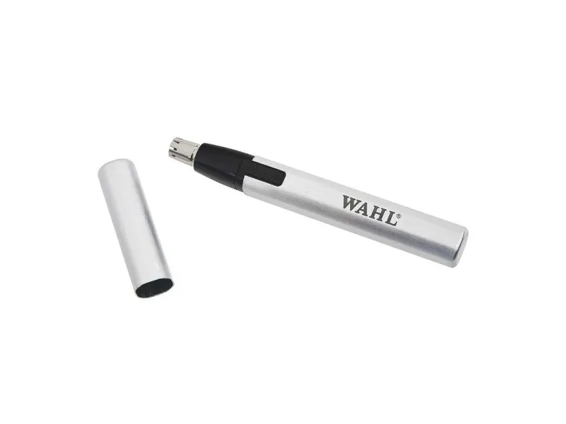 - STAINLESS STEEL: Rotating stainless steel cutting system with spring-loaded blades removes hair safely – without nipping.\n- ELEGANT: Brushed aluminium housing.\n- HYGIENIC: Removable cutting head can be cleaned under running water.\n- EXTRA: High-quality box in leather design.