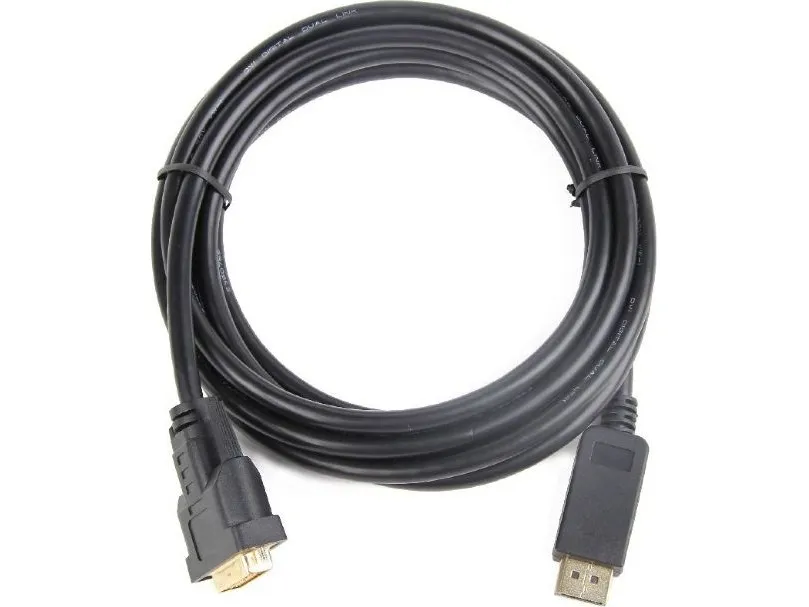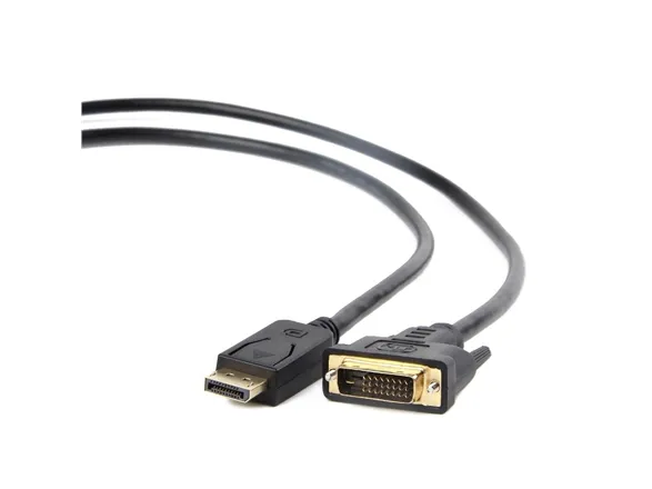 The Gembird Cablexpert CC-DPM-DVIM is a display cable designed to connect devices with 20 pin DisplayPort and 24+1 pin digital DVI connectors. This cable features a durable construction with aluminum braid shielding, ensuring reliable performance and reducing interference. The molded design and gold-plated connectors provide secure connections and enhance signal quality. This cable is compliant with ISO 9002, RoHS, and SGS standards, making it a choice for both personal and professional use.