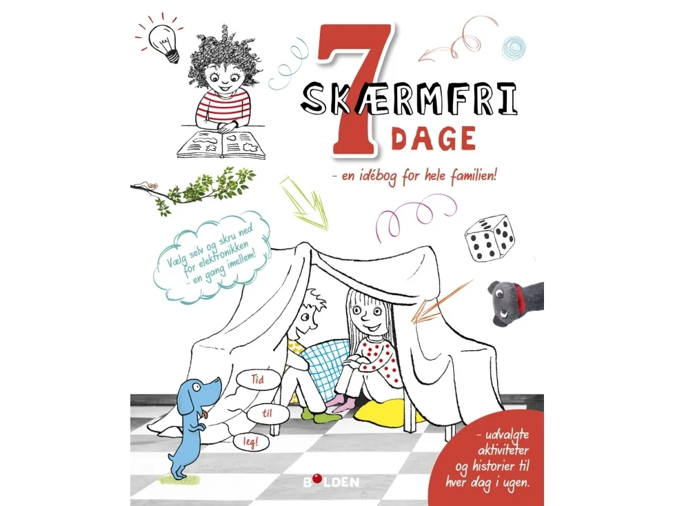 7 skærmfri dage - en idébog for hele familien! er tænkt som en inspirationskilde til nogle små afbræk i en digital hverdag. En idébank med forslag til aktiviteter og lege, som I kan dykke med i, når I har lyst til at finde alternativer til computerspil, smartphones, streaming af YouTube, film og tv-serier. Og med tips og tricks til en god start på dagen og ting, der er værd at overveje (og huske på) i en travl hverdag.Det handler i bund og grund om at skrue lidt ned for elektronikken og op for samværet. Bogen er inddelt i syv dage, som hver indeholder tips til en god start på dagen, forslag til en eller flere aktiviteter og lege og en god historie, rim og remser, sange eller kig & find-sider, som alle egner sig til højt- eller fælleslæsning.