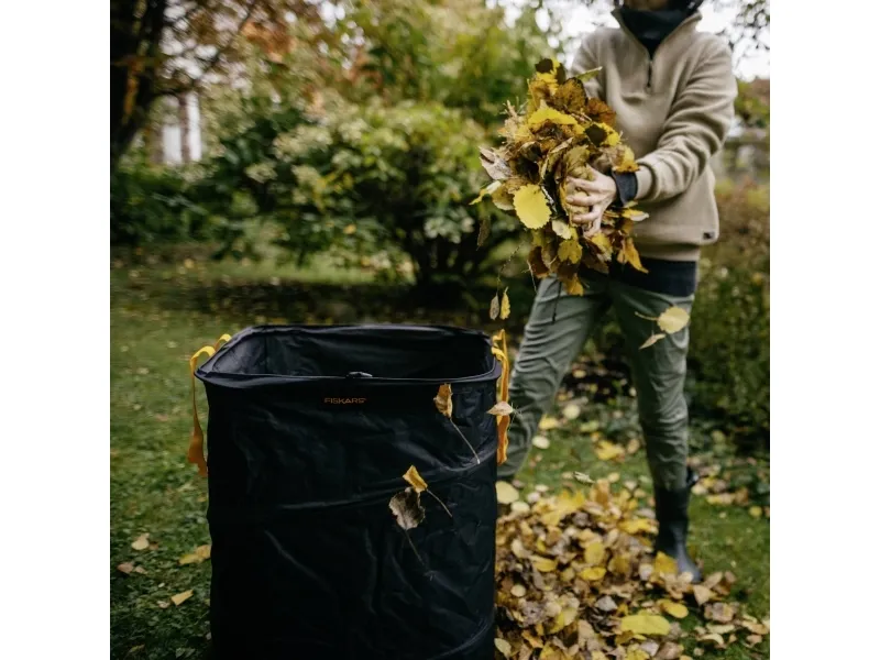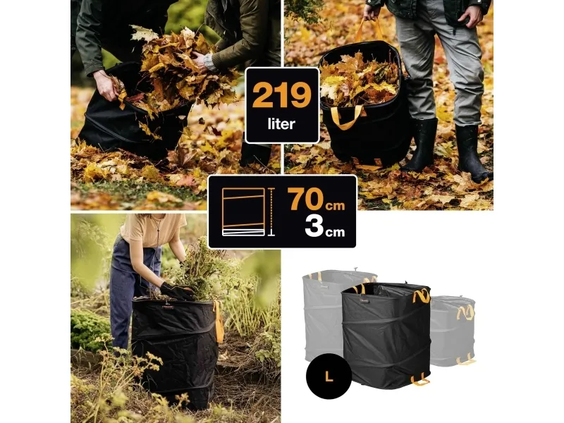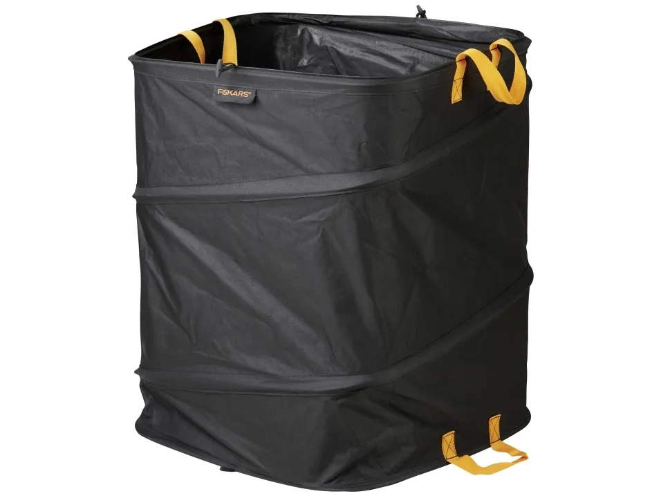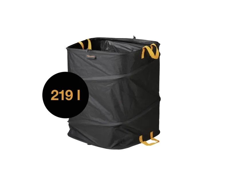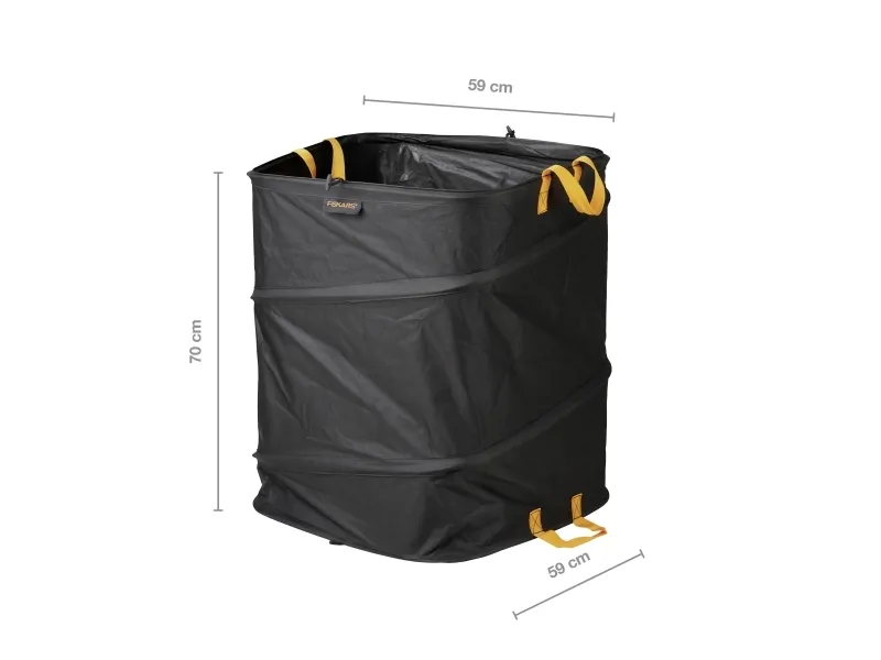 Fiskars ergo pop-up havesæk, 219 L ideal til samling af våde haveaffald som fugtige blade eller plæneklipning, ukrudt eller legetøj Indvendig fjedermekanisme åbner sækken til anvendelse Vand- og skimmelresistent materiale for en nem rene sugning Lang holdbarhed takket være brugen af mere bæredygtige plastmaterialer ( ingen brug af PVC) Kvadratisk form med stabilt greb til nem påfyldning og nem transport Kan foldes sammen til pladsbesparende opbevaring Arbejdet i haven kan nogle gange være meget kaotisk: Efterårsblade i store bunker, og det uundgåelige ukrudt omfatter grønsagsbed og græsplæner overalt. Transport til kompostbunken er nu med den kvadratiske ergo pop-up-pose i tre størrelser hyggelige. Let, bærbar og sammenklappelig, dette supplement til dit haveskur bliver ryddeligt igen.